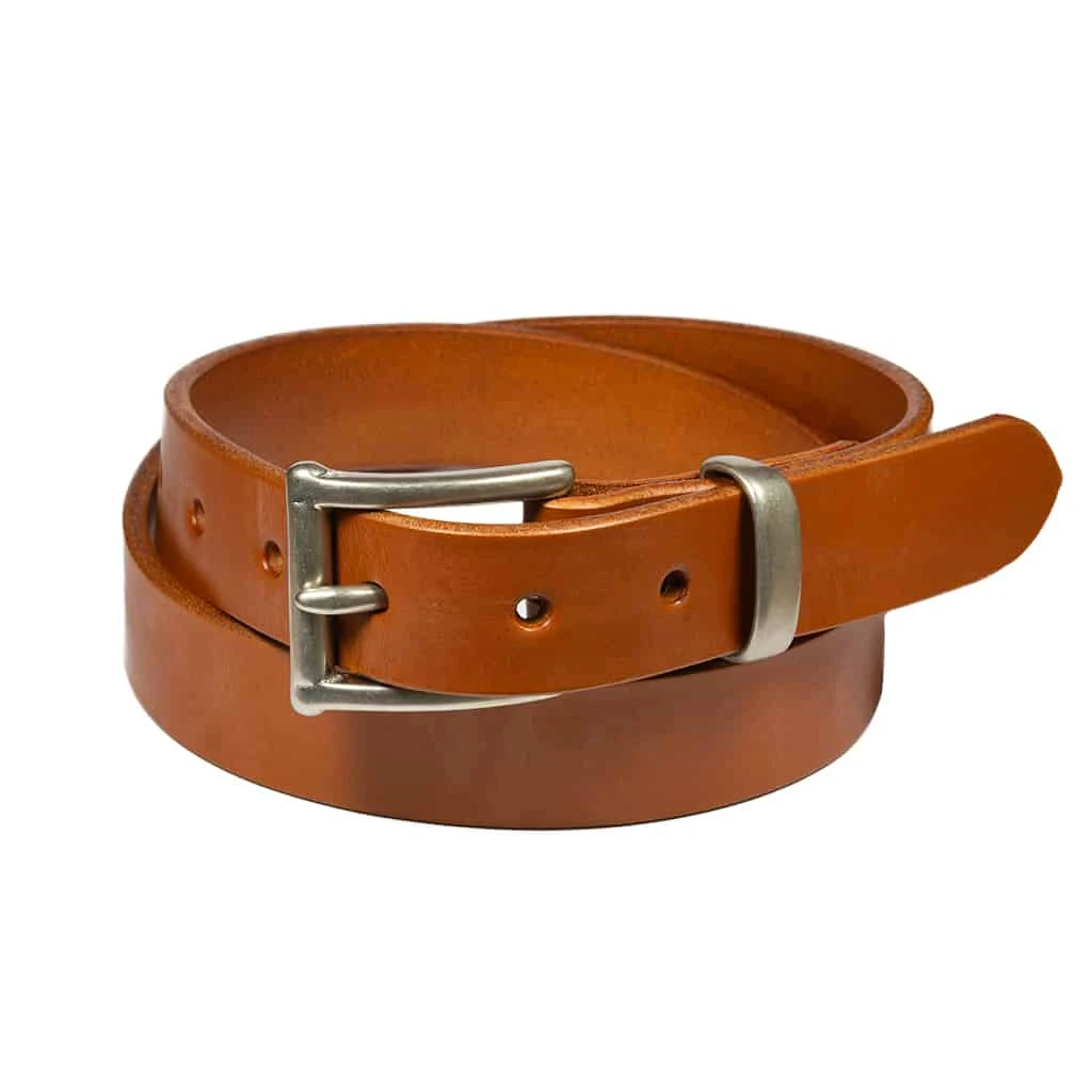 Barnes & Moore’s Slim belt is a narrowed down version of their incredibly popular Garrison model, for those who prefer a thinner silhouette. All of the rugged detailing remains, including 5mm leather which takes around 4 months to prepare, and solid brass hardware and riveting with nickel plating. This belt measures up at a 32mm width, and pairs brilliantly with both denims and chino styles.