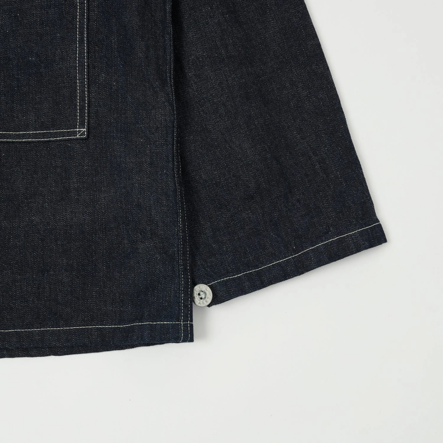 Cut in a boxy shape, this early 20th-Century inspired pop-over shirt is inspired by those worn in the U.S. Army. This simple design boasts a light-ounce denim fabric, which has been rinsed for comfort, and is sure to fade beautifully over time.