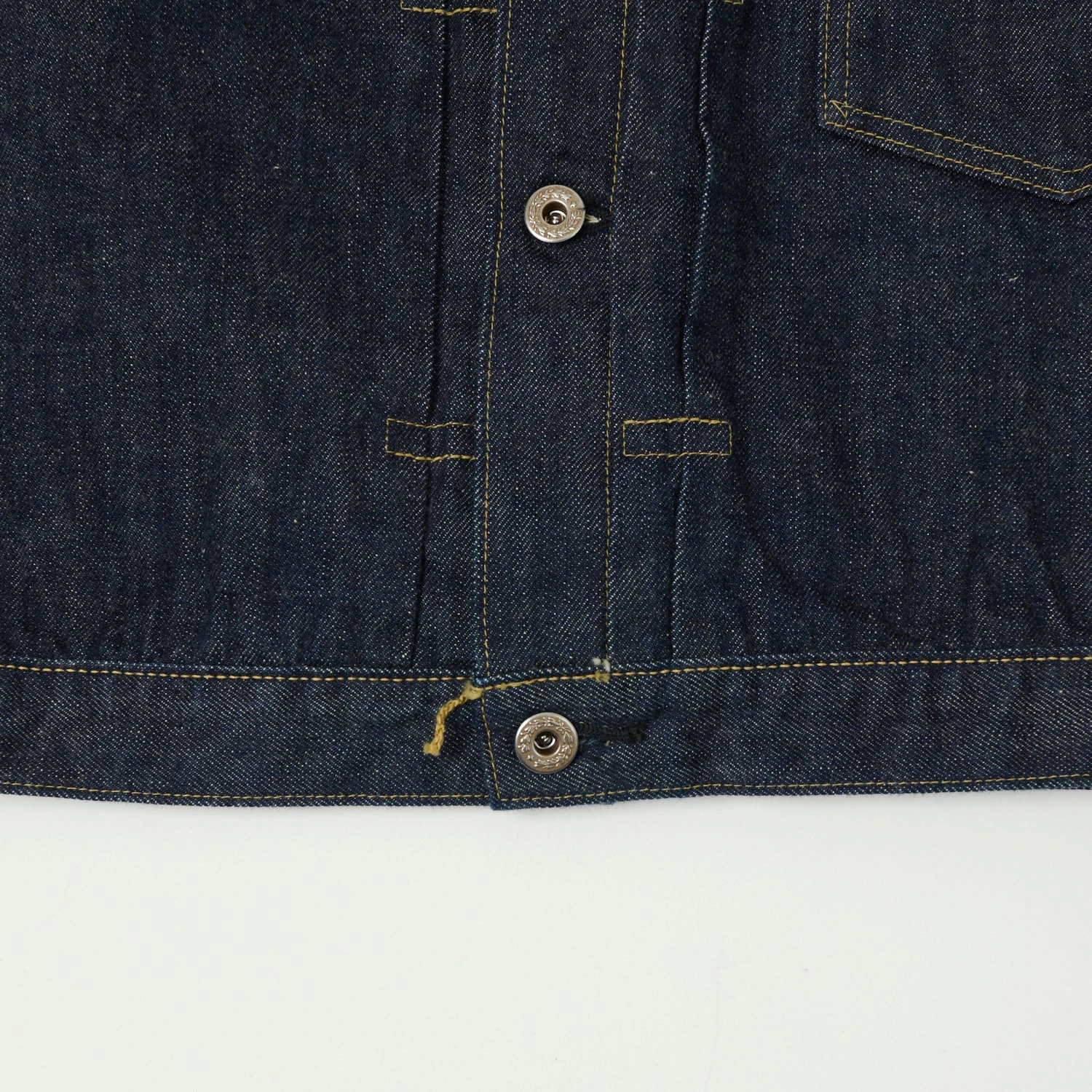 Buzz Rickson’s presents their interpretation of the iconic Type I: the denim jacket that started it all. This replica of an iconic WWII innovation is made of 13.6oz denim allowing the jacket to soften over time and age beautifully. With iron arabesque donut summarys, pleat stitches and adjustable cinched back, it is the details that makes this jacket stand out. With its shorter cropped silhouette it can be styled with ease, chucked over the top of most outfits.