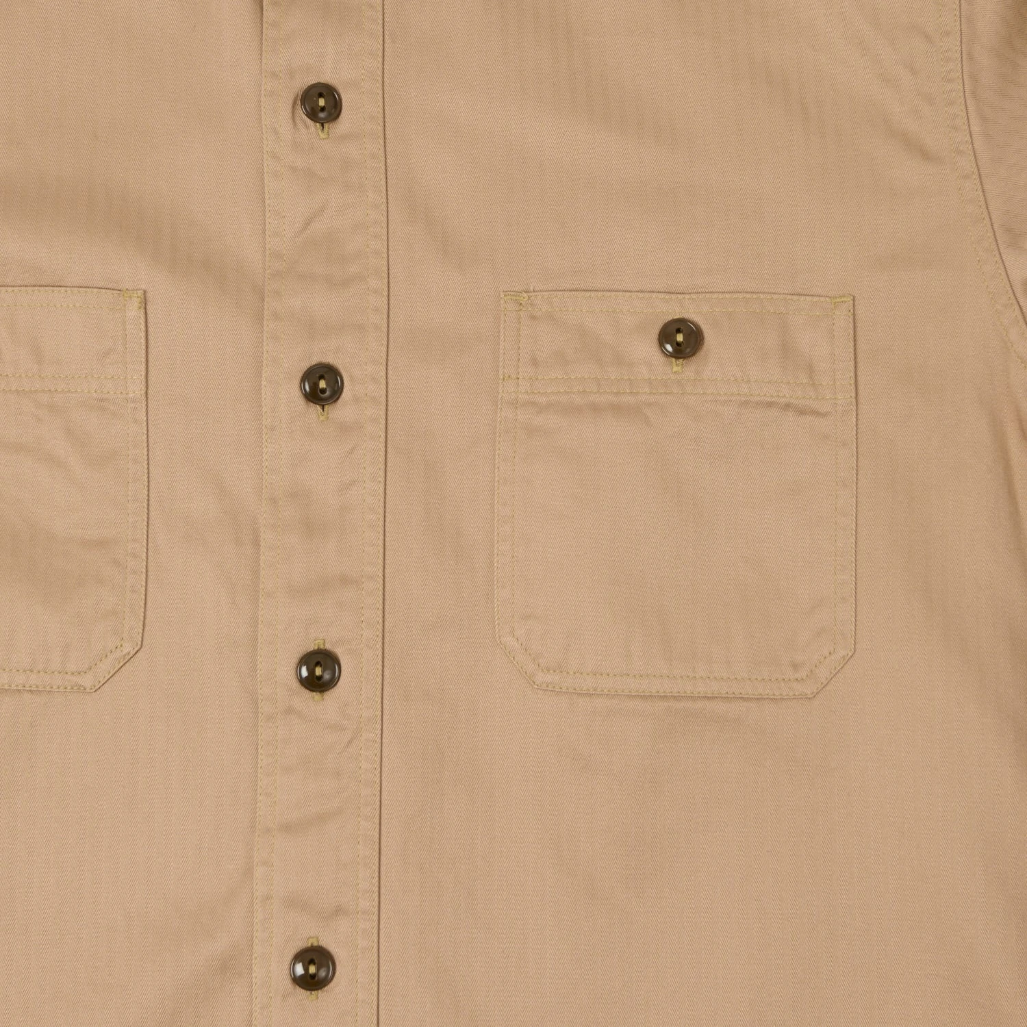 Cut from a 100% cotton woven in the traditional herringbone design, this standard fit work shirt is an icon of the heritage world. Its simple design is what stands it out as a tried and tested classic of vintage workwear, and its durable manufacturing techniques are what ensure that it will last a long, long time. Two simple chest pockets adorn the front, and a full summary front closure is lined with vintage inspired summarys.