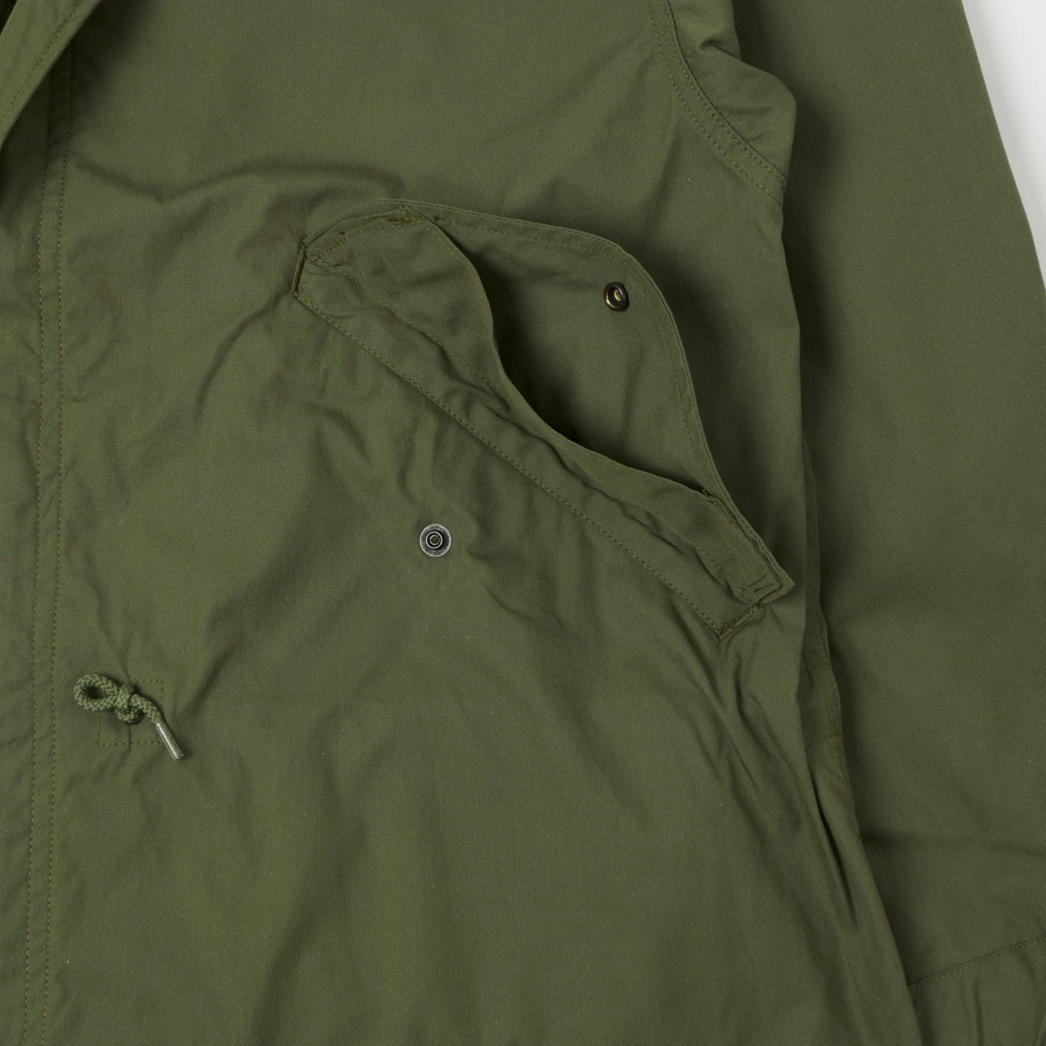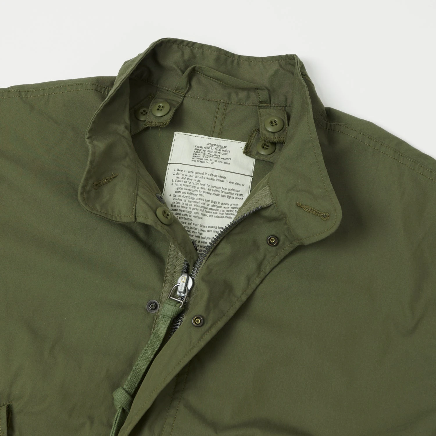 Introduced as a lighter weight alternative to the bulky M-1951 Parka, this M-65 option is cut from an Oxford weave cotton, which boasts a supple hand, and a water repellent finish. This classic oversized garment was originally designed to be layered up, and was light enough to be easily packed down when in need.