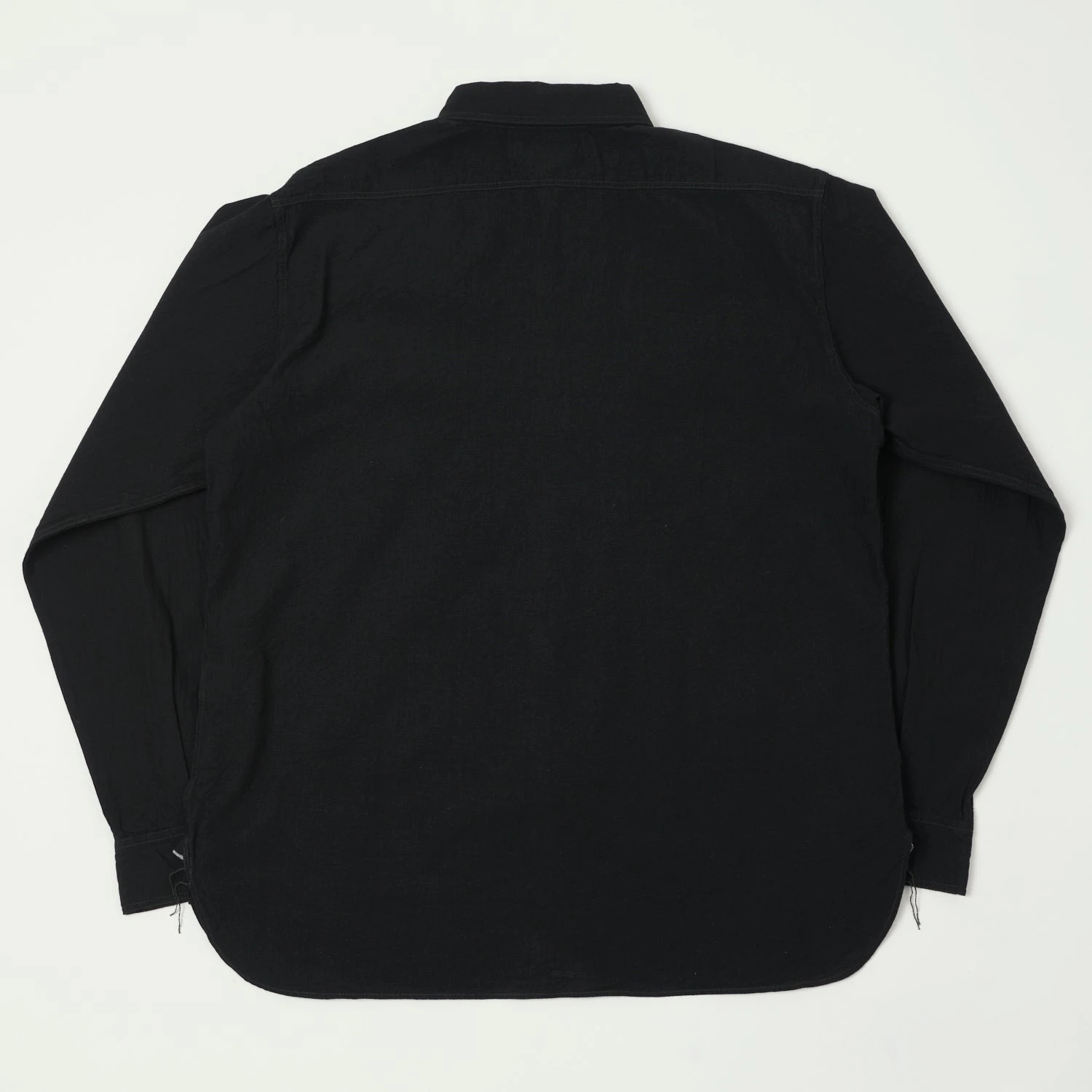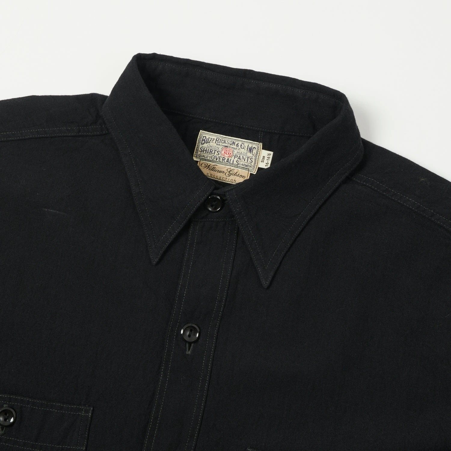 With an authentic cotton Chambray fabric which has been specially woven on vintage shuttle looms, this standard fit shirt from Buzz Rickson’s brings heritage charm, and classic design to the forefront. With a slight twist, this black version arrives to us as a collaboration with writer William Gibson, as a tribute to his novel Pattern Recognition. A crisp fabric finish, stand collar, and formal summary plate give this shirt its military edge, while flat felled seams add durability.