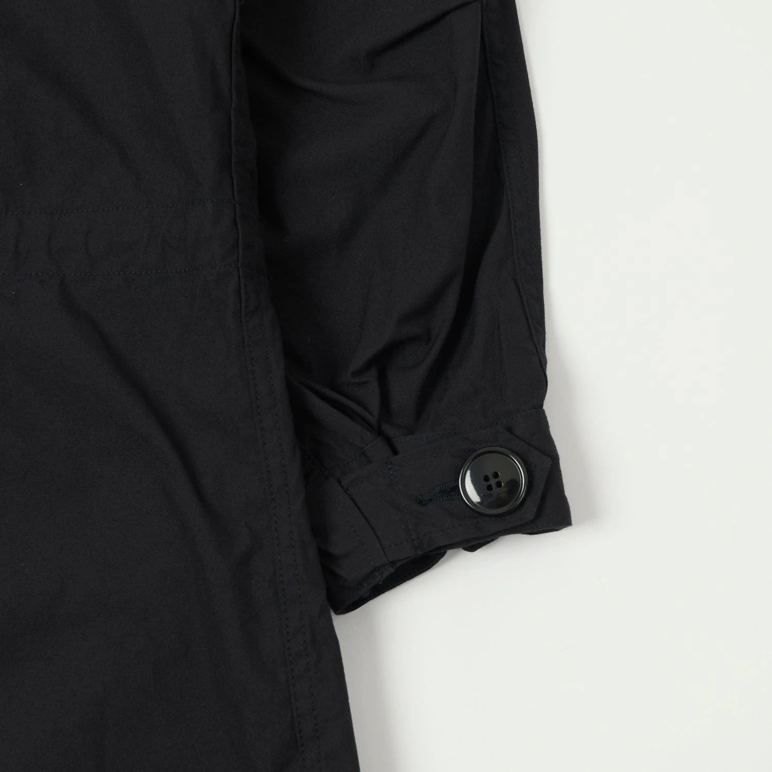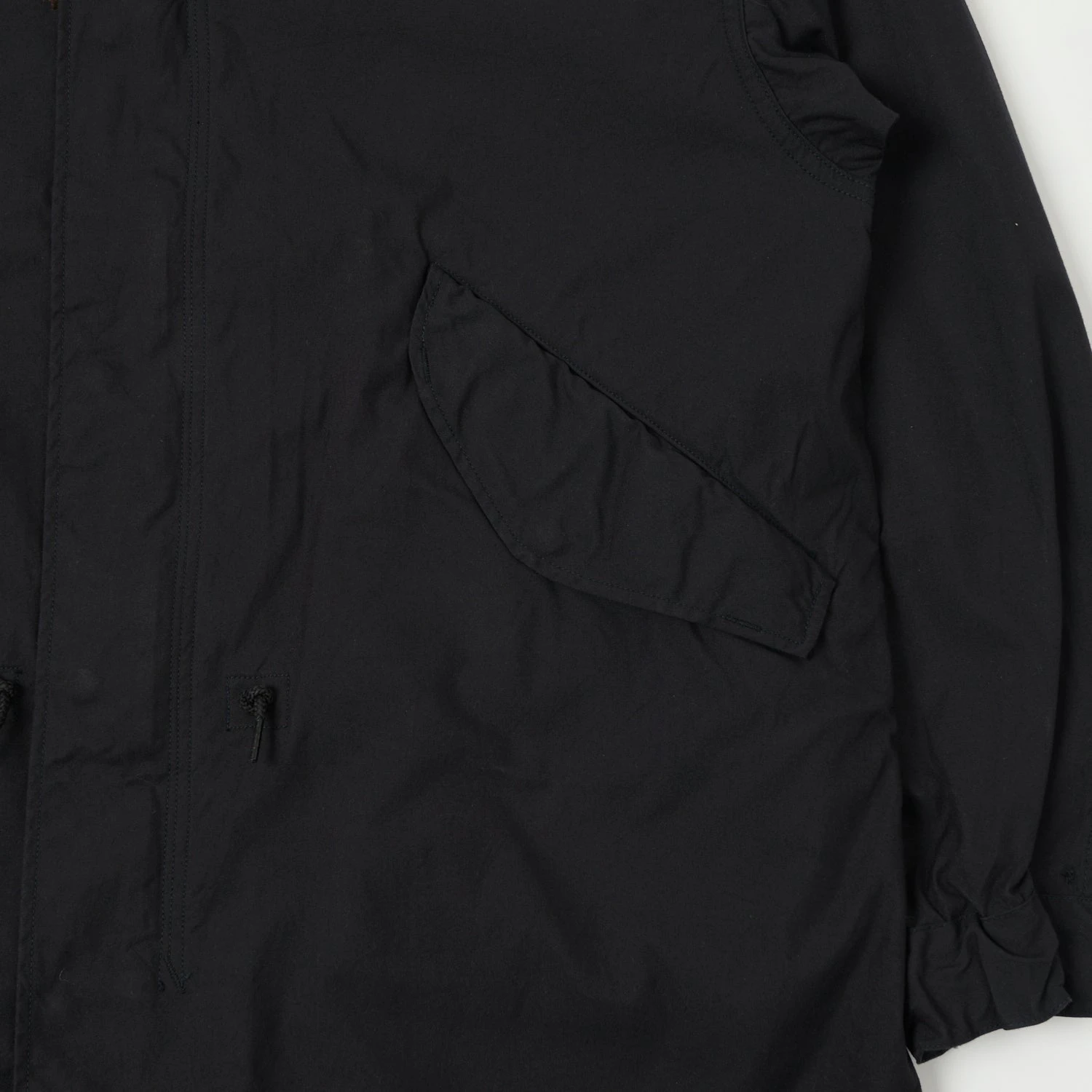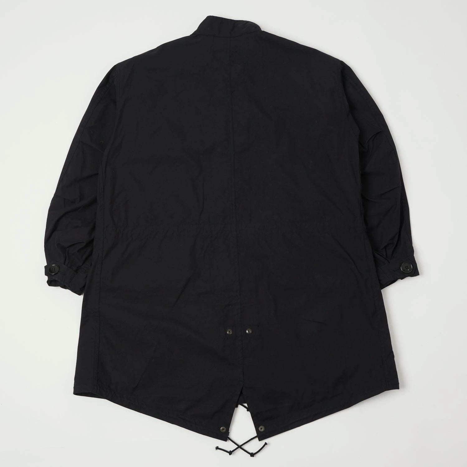 Introduced as a lighter weight alternative to the bulky M-1951 Parka, this M-65 option is cut from an Oxford weave cotton, which boasts a supple hand, and a water repellent finish. This classic oversized garment was originally designed to be layered up, and was light enough to be easily packed down when in need. This exclusive black colour option has been created in collaboration with author William Gibson.