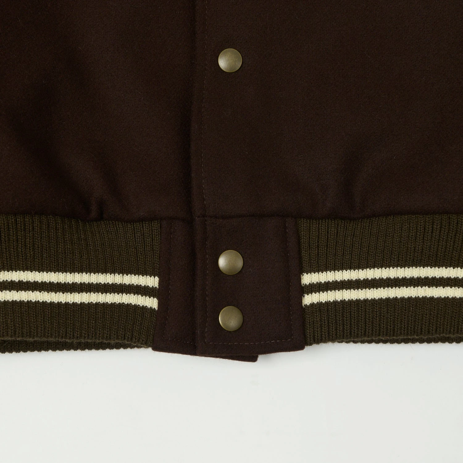Dehen has been making their heavyweight varsity jackets since the early 1950s, so they’re something of an authority in the field. Still made in the USA and built by hand, the brand has cut this piece from a 22oz Melton Wool, and added a premium leather contrast to the sleeves, pocket welts and locker loop. With a 100% Worsted Wool trim on the roll collar, hem and cuffs, the jacket retains heat while prioritising comfort. Finished off with an internal patch pocket, the jacket has a snap front closure that keeps the vintage vibe strong.