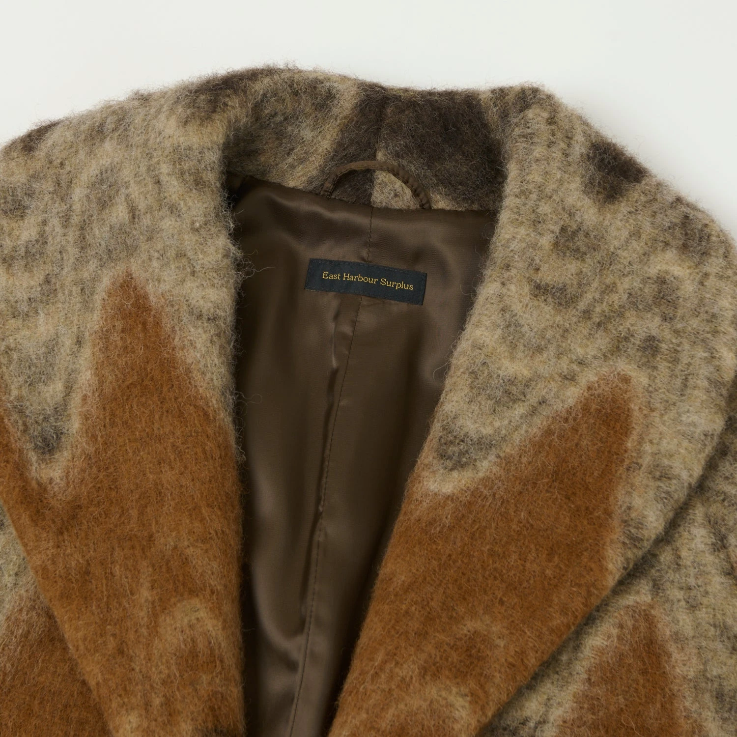A standout piece in the brands collection, the Bourne 911 Shawl Coat from East Harbour Surplus dyed yarn wool blend to create a striking pattern, which is applied to a swooping collar and relaxed body. Secured with a single horn frog closure and with two front pockets for easy storage, this unique piece of outerwear will keep you warm just as much as it gets your compliments.