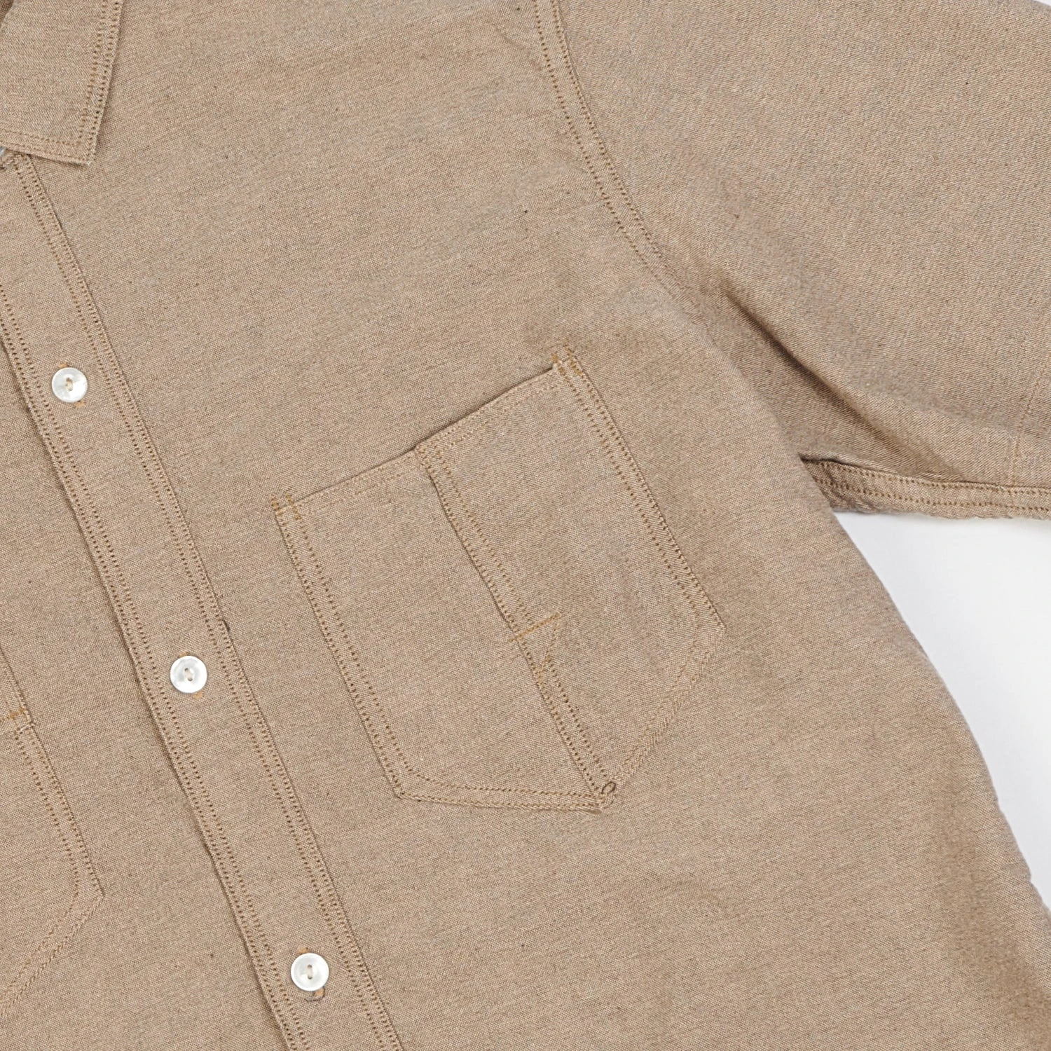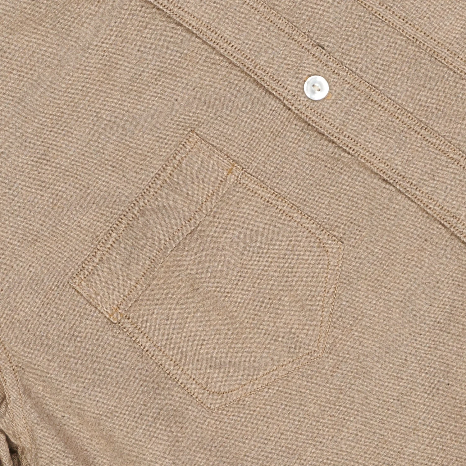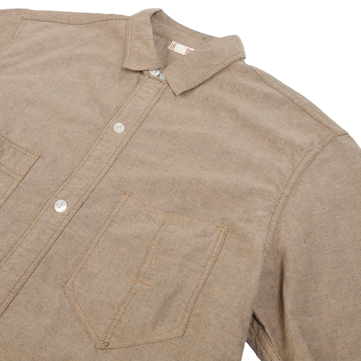 This brilliant new summer offering comes in a beautifully soft 100% cotton short sleeved shirt, affectionately named ‘Big Bertha’. Freewheelers & Co have crafted this timeless classic with inspiration from the early 20th century. The shirt is a boxy shape and boasts features from the early 1900’s such as the throat tab and rounded, asymmetrical shirt tails, as well as double felled seams throughout for superior durability. The summarys are a vintage ivory style on this model and the fabric has a vintage fleck to its appearance. The heritage cotton label on the inside bears the familiar name of ‘Union Special Overalls’. This design lends itself for perfectly for the summer months for its lightweight fabric and breathable design.