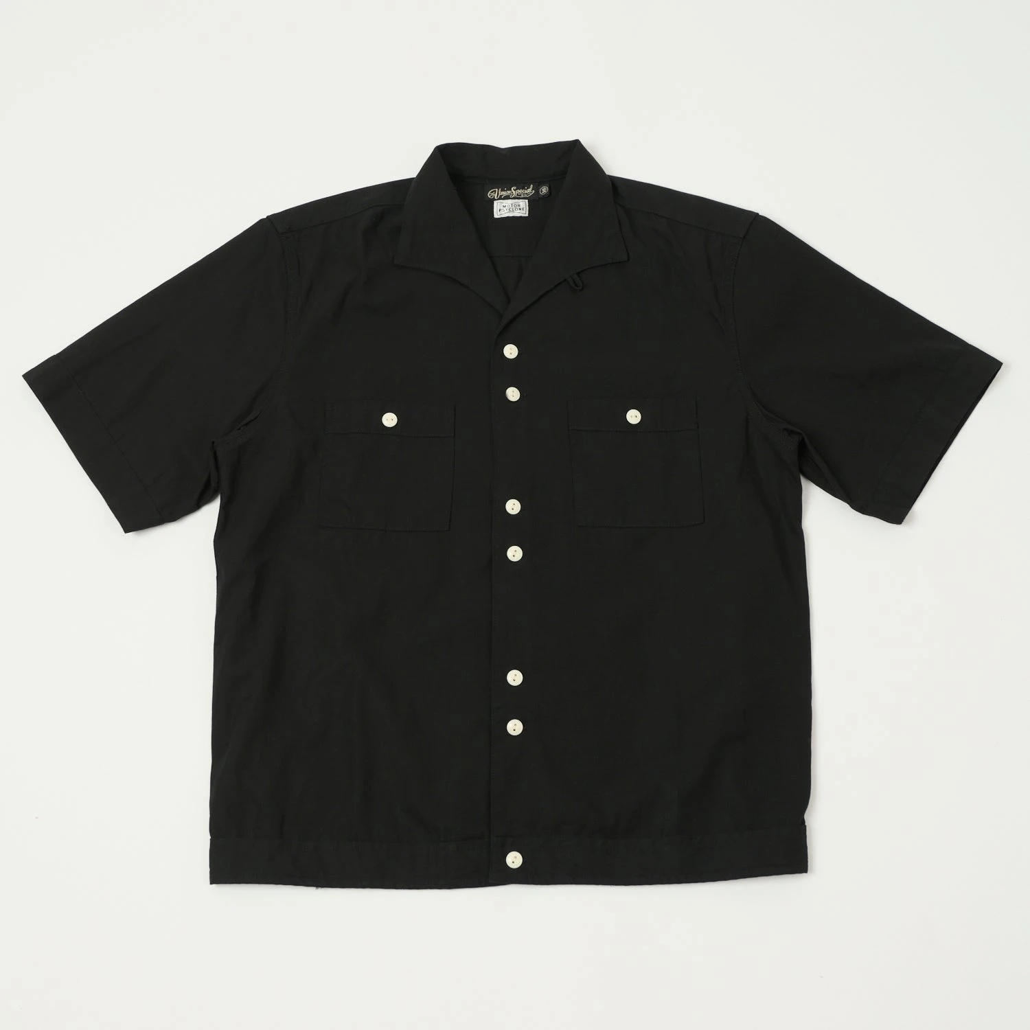 The ‘Benny’ shirt from Freewheelers ‘Moto Psyclone’ sub-brand is directly inspired by Danny Lyon’s ‘The Bikeriders’ photobook. Like the book, this shirt evokes the rebellious and free spirited atmosphere of 1960’s America through its simple but quality design. Made from a 100% mercerised cotton gabardine, the piece has an incredibly boxy fit, reminiscent of a bowling shirt. Bright white summarys highlight the piece on the front, breast pockets, and on two side cinches which help adjust the fit. An open collar makes for a laid-back feel, and a custom label ensures quality and adds extra historical accuracy.