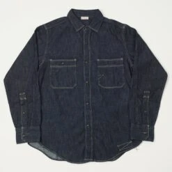 From Freewheelers ‘Union Special’ sub-brand, the ‘Diamond Cracker’ work-shirt is based on the railroader and engineer shirts of the 1920s. Boasting a simple, understated look, the shirt uses mother of pearl summarys as a highlight on the front, cuffs, and left-hand pocket. Made from a 100% cotton denim, the shirt is a perfect base for any outfit.