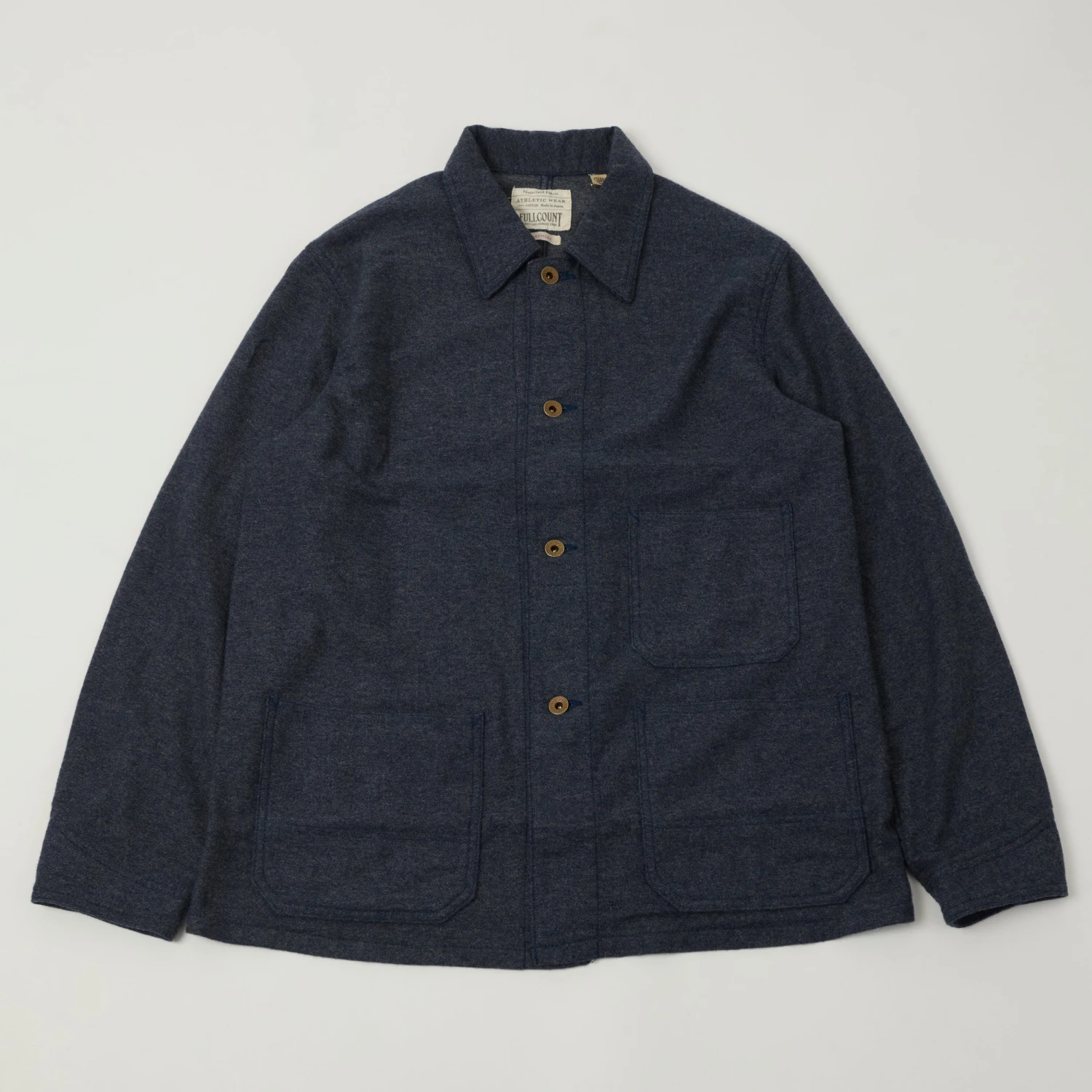 This new take on one of Full Count’s classics draws reimagines the classic chore jacket into a smart and lightweight cashmere/wool blend shirt, perfect for layering in winter! Simple patch pockets have been given the heritage treatment, while 5-star donut summarys adorn the front closure. For a final touch of quality assurance, the brand have included their custom manufactured, heritage inspired cotton brand label on the collar.