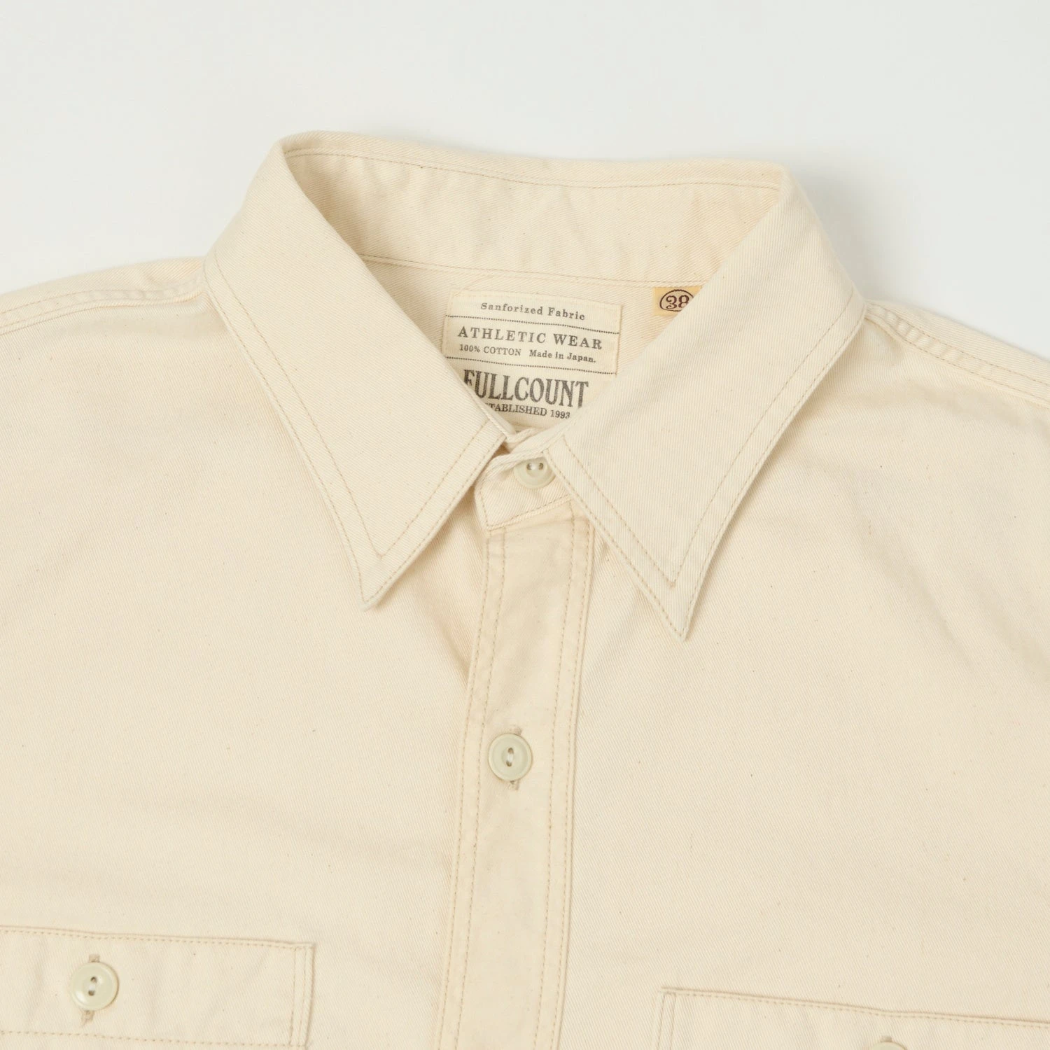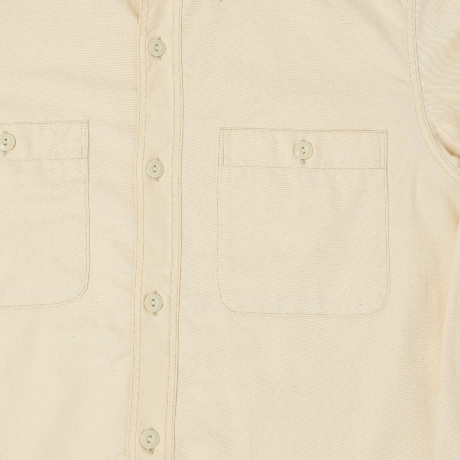FULLCOUNT have crafted this new take on their classic work shirt from a firm, 100% cotton twill that is both sturdy and comfortable. Bio-stone processing has been utilised to give the fabric its vintage appearance. Two chest patch pockets and the front closure are adorned with matching colour summarys, and a custom label sits on the back collar as a mark of quality assurance!