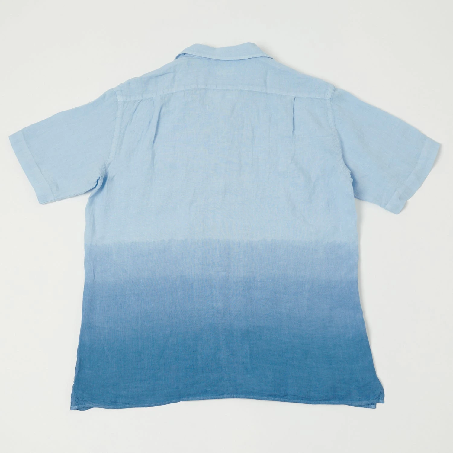 An open collar nods to designs of the mid-20th Century, while complimenting summarys have been used for the front closure, to ensure that nothing is out of place. A single chest pocket has been added for functionality, while the relaxed shape of this shirt has been enhance by pleats sewn into the back yoke. For a touch of summer fun, the brand have offered a blue tie dye effect which gradually gets darker towards the hem.
