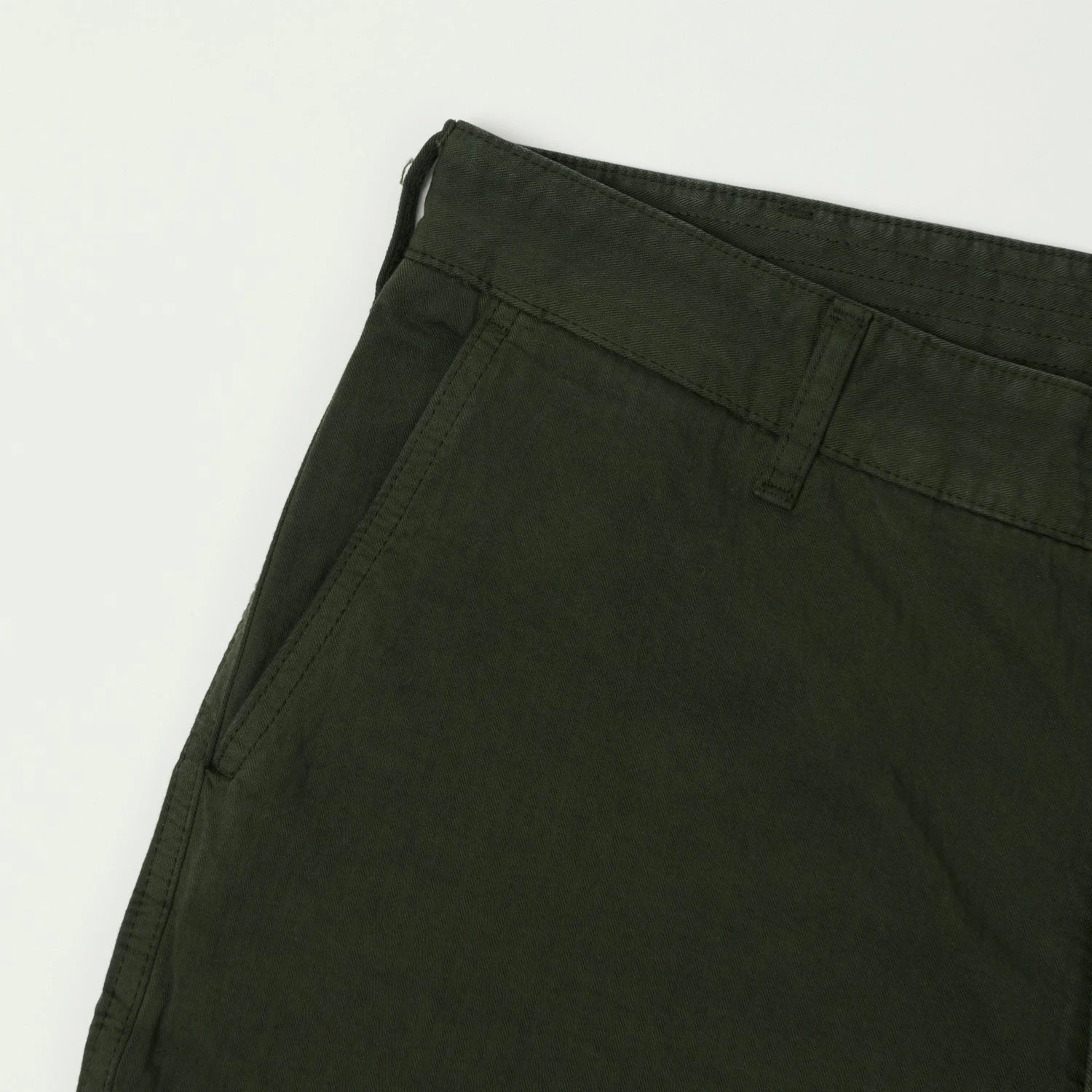 Heimat’s ‘Journey’ Chino is the perfect addition to your wardrobe. Made from a soft 100% cotton herringbone twill, these trousers are incredibly comfortable. Other key details include: a summary fly, front slash pockets, and a summary closed patch pocket on the rear which has been subtly stylised with 3 horizontal monochrome stitches.