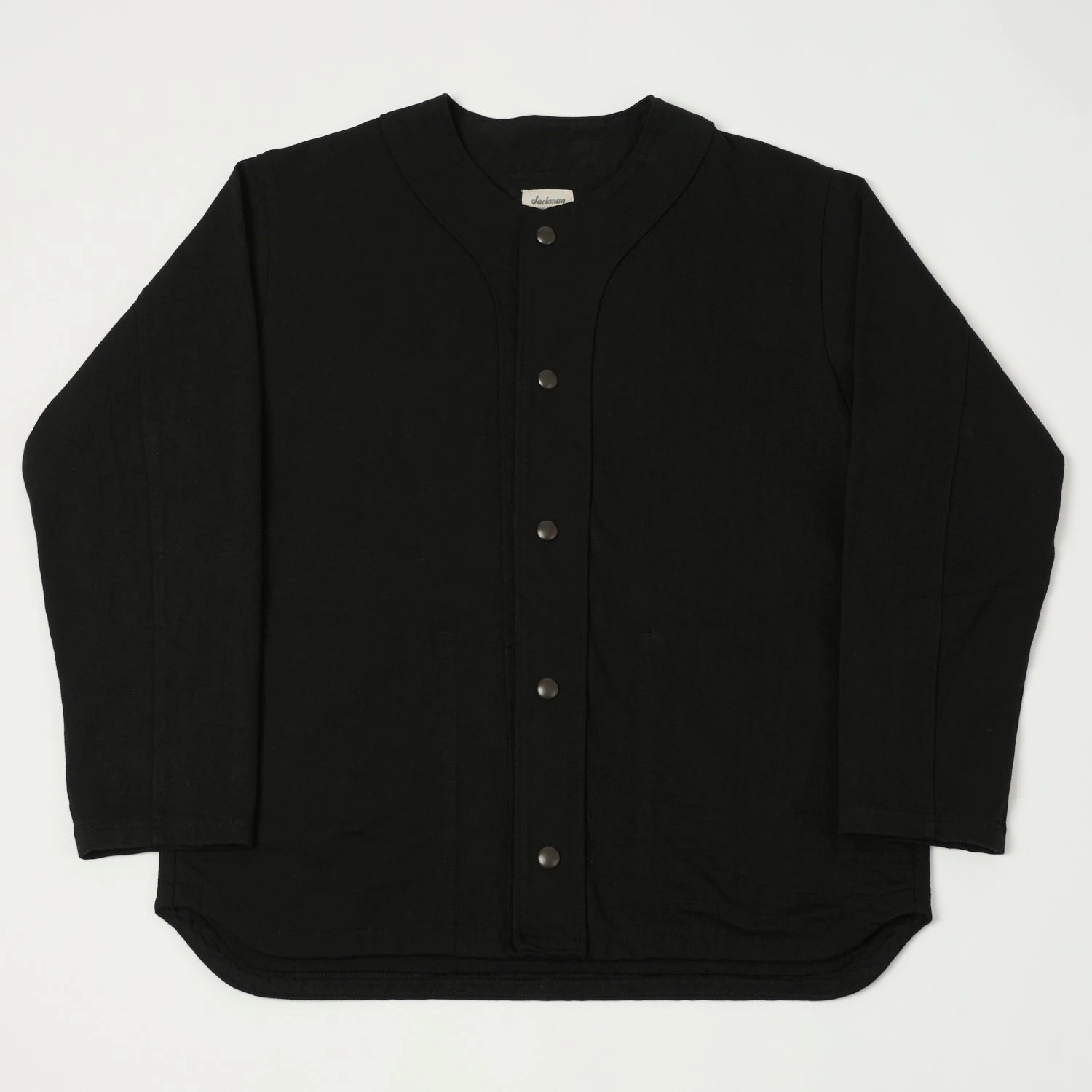 The Dotsume UF Jacket draws on Jackman’s passion for baseball, and is crafted from a heavy 100% cotton jersey. With a simple boxy shape and baseball collar, this Cardigan features metallic snap summary front fastenings, and two simple side entry pockets for functionality. This versatile number is perfect for layering up in the winter months, and makes a great light jacket when the weather is warmer.