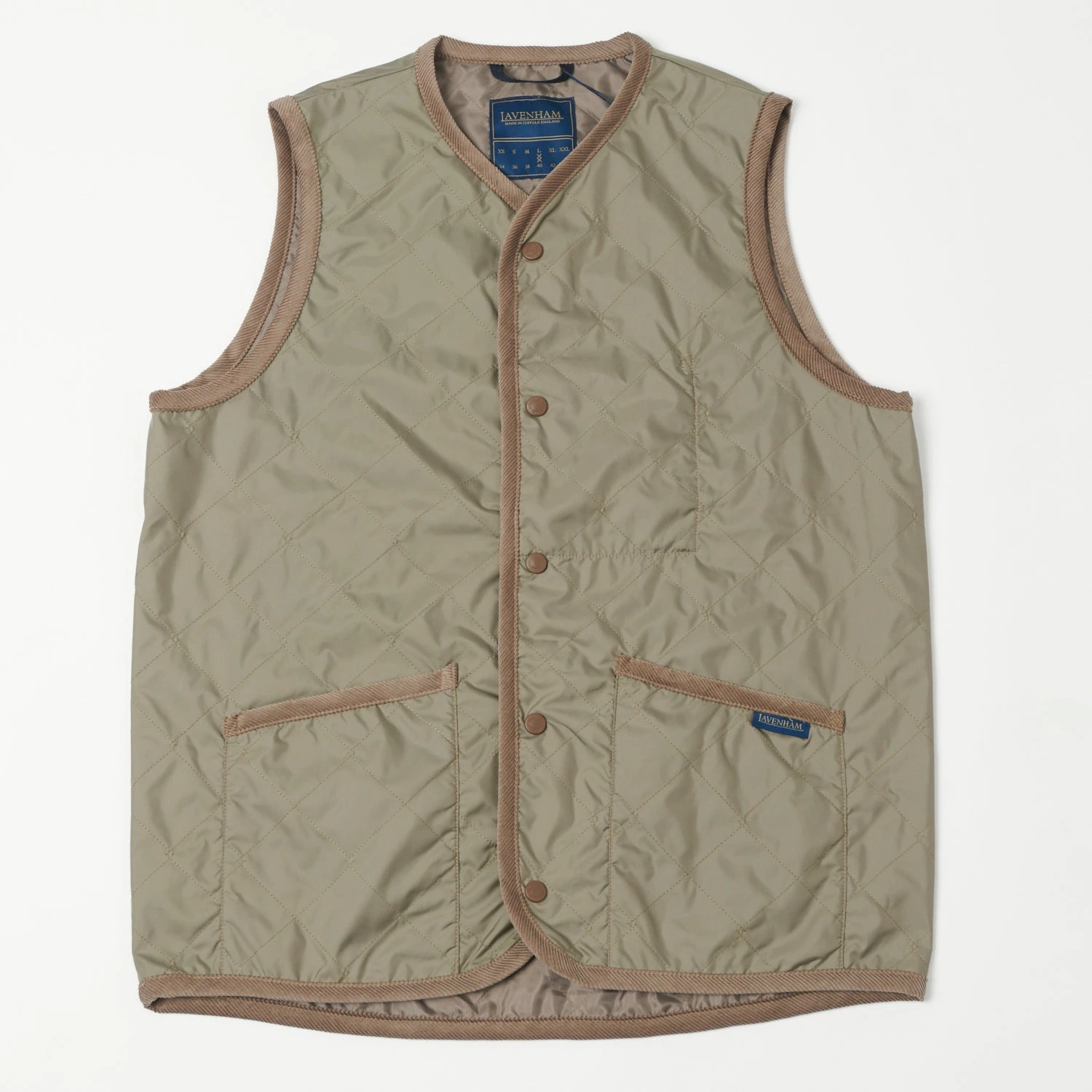 This paired down, straight cut gilet design from England’s Lavenham brand offers superb warming qualities, and incredible versatility. Crafted from a quilted recycled polyester fabric for durability, and lightly insulated for protection, this collarless design can be worn as either an inner or outer layer, and boasts secure snap fasteners for the front closure, and twin patch pockets for functionality.