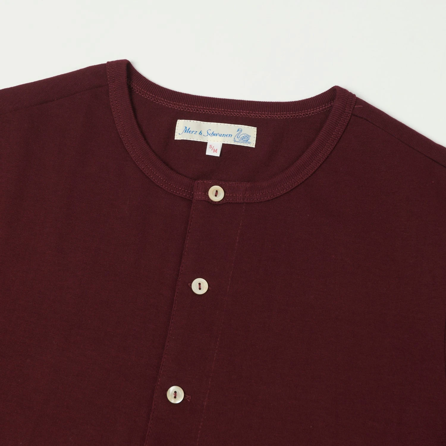 The 206 from Merz B. Schwanen is a timeless classic. This three summary Henley is brilliantly cut in a standard fit tee, a little slimmer than the 204, and is made from beautiful materials. The 100% organic cotton has been expertly woven using vintage loop wheel looms to produce a fabric which is not only luxuriously comfortable, but incredibly durable. Three ivory coloured summarys help to secure the breast plate, adding a convenient opening for when the weather gets warmer. Ribbed cuffs have been included for a comfort fit, and the hem has been squared off for a crisp, clean finish. This Henley is a fantastic option all year round, as a great tee in the summer months and then a perfect layering piece when the colder weather arrives.