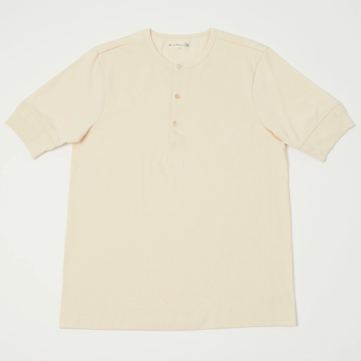 This versatile 207 short-sleeved Henley from Merz B. Schwanen is a heritage design with a comfortable fit. This brand is known for doing the simple things well, better than anyone else in fact, and this tee is a brilliant example of that. It is a standard fit that is not too slim and not too boxy. The sleeve is short but longer than a standard tee and is ribbed for the perfect comfort fit. The summary plate is lined with three ivory coloured summarys which make a convenient opening to allow for added breathability. The fabric which this Henley has been constructed from is a luxurious 100% organic cotton which is not only incredibly soft but durable to boot. The material has been expertly woven on vintage loop wheel machines which create a unique quality that is unachievable by more modern techniques. The result of this unique technique is a fabric that keeps its shape throughout its long life span and has no side seams. We love this tee at Son of a Stag as it does everything that a great tee is supposed to do. The only problem now is to decide which colour to go for!