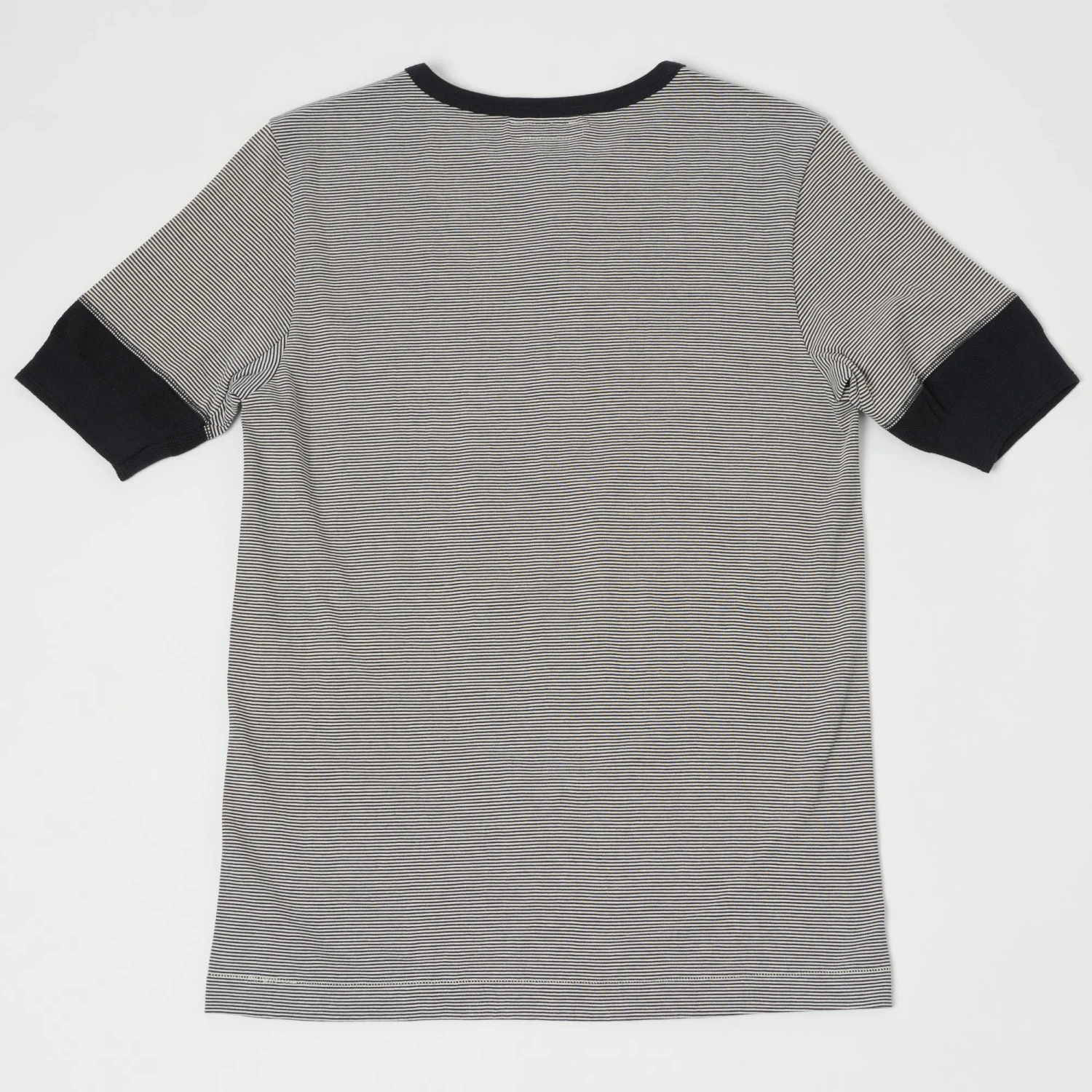 Woven from a beautifully soft organic 2-thread cotton, this tried and tested classic is back from one our favourite producers of quality basics. The 227 henley is a standard fit tee with a fine, needle stripe running throughout, adding a subtle touch of interest. To compliment this, the brand have added a slightly longer ribbed sleeve for a superb vintage effect. A contrast 1/3rd summary plate features three pearl style summarys which can be undone to allow for further breathability when the weather is warm.