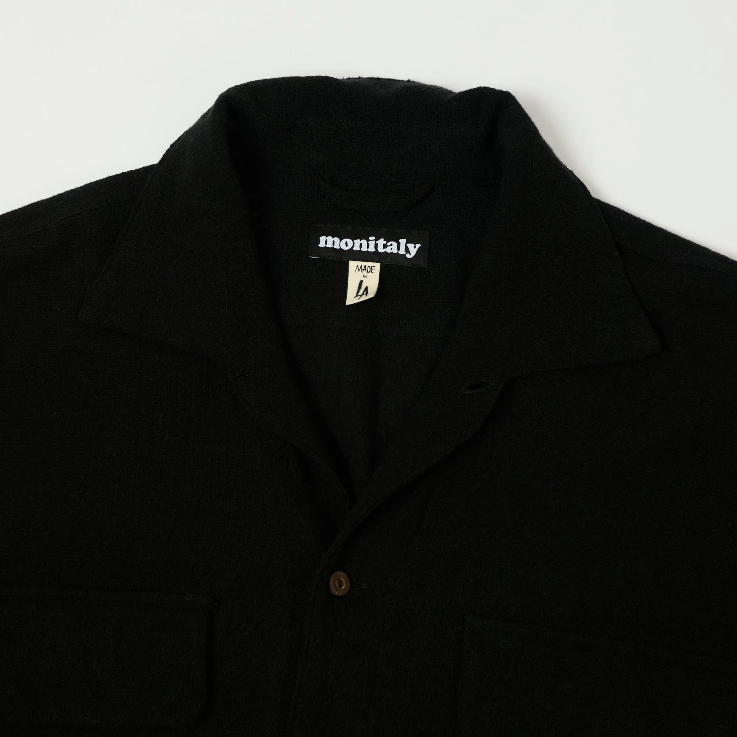 Monitaly continues their love for classic designs and contemporary style with their ’50s Milano shirt. Made from 100% cotton this breezy shirt will be perfect for summer days. With a beautiful relaxed Italian collar, two flapped patch pockets, and military standard melamine summarys, this shirt really does marry practicality with style. In a classic black colour, you can be sure that you will wear this shirt time and time again.