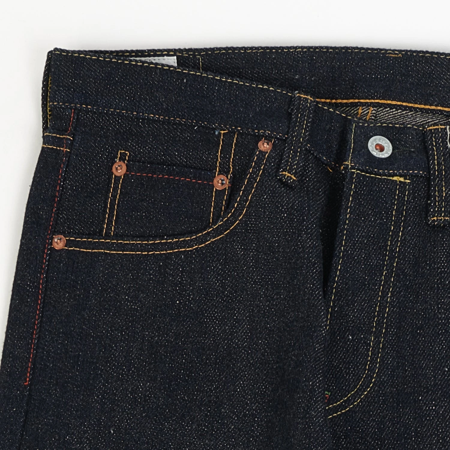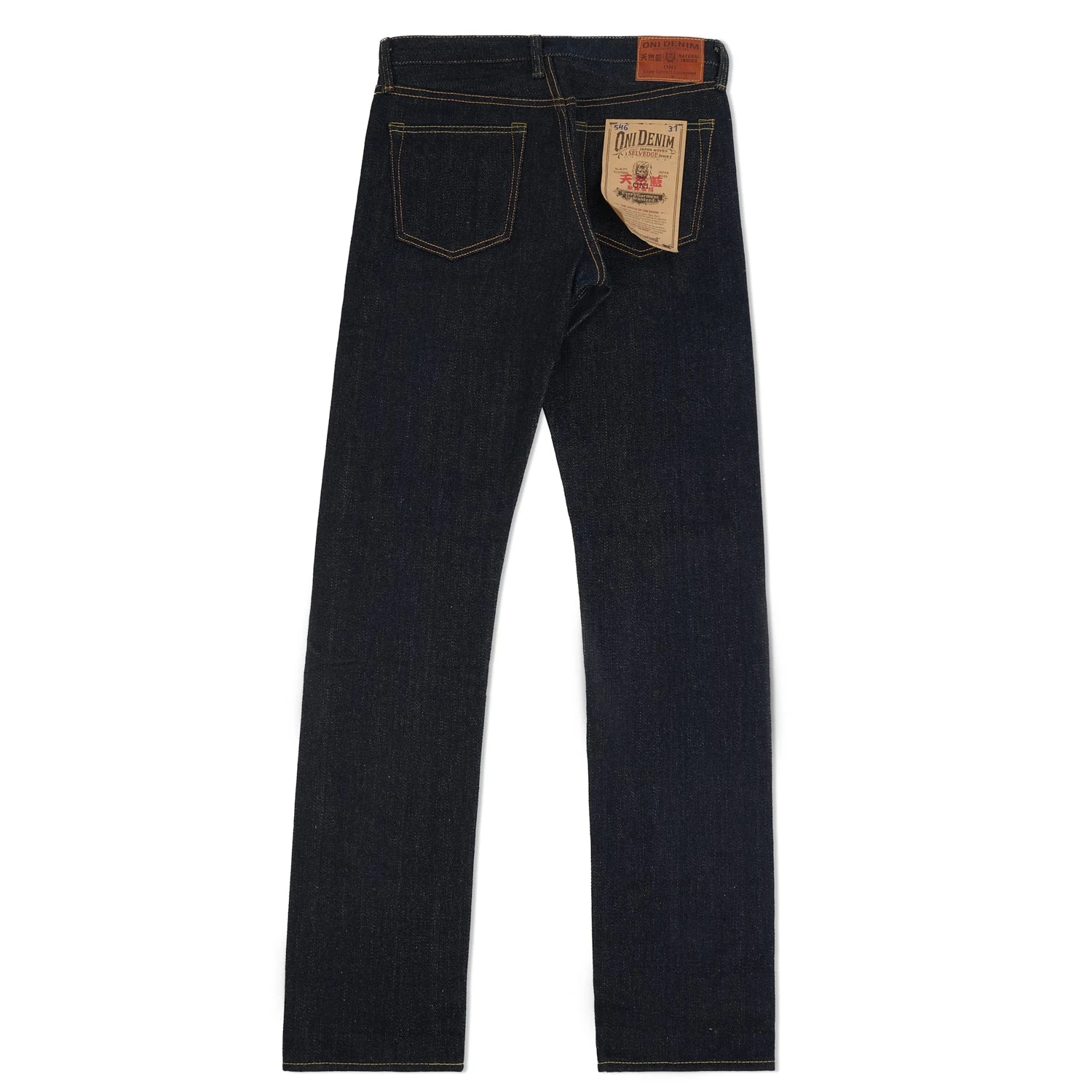 One of ONI’s main contenders in the heavyweight category is this natural indigo 546. Weighing in at 22oz, these jeans are interesting from the start, but pair that with a slubby, low tension weave and natural indigo dyeing process and you have something really original. The natural indigo fades slowly over time, and when it does, it reveals a beige dyed weft which gives the jeans a wild heritage feel. The 546 is a regular tapered fit with a classic 5-pocket waist construction, providing a comfortable fit at the waist and a slow, natural taper down to the ankle. They have one of the most interesting selvedge lines we have seen here at Son Of A Stag, in a combination of black, orange and green. They are supported by universal copper rivets, heavy-duty green bar tacks and raised belt loops. The beautiful deerskin leather patch with the company’s iconic mascot is present on the back. These 546’s are perfect for the heavyweight denim fan with an eye for nuanced details.