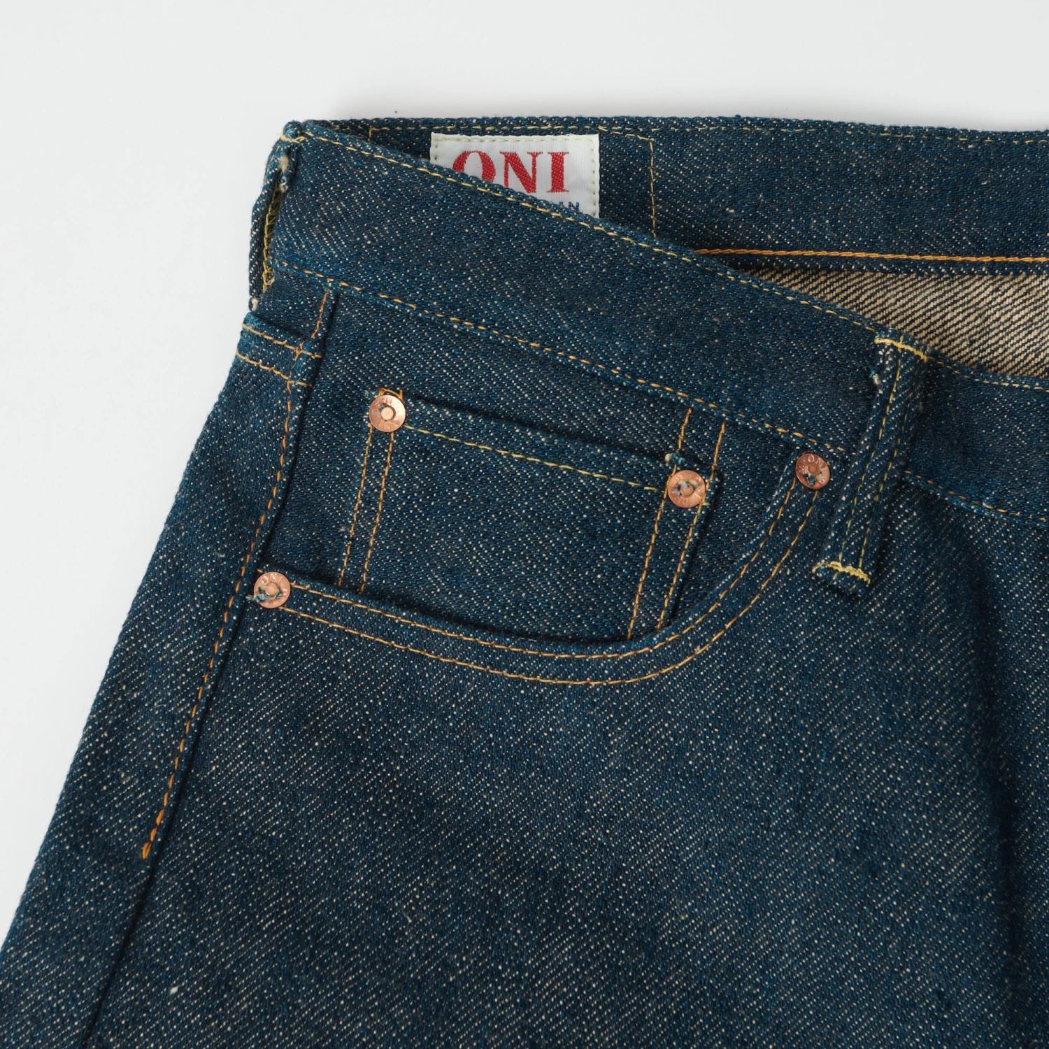 The 575 is a real customer favourite here at Son of a Stag, and now we have something a little more special; the 575ZN. These jeans have been crafted using ONI’s mysterious ‘secret denim’, a 20oz masterpiece of low tension, slubby woven fabric. The irregular feel of this denim is paired with a beige dyed weft which creeps through the surface of the fabric, adding a perfectly imperfect texture and a feeling of wild heritage. Beautiful fades are guaranteed with this denim, and the heavyweight fabric will soften and feel more comfortable with each wear. The 575 is a straight fitting jean with a 5-pocket top construction. The medium rise sits comfortably on the waist and goes straight down from there for superior comfort in the leg. These jeans feature the iconic pink selvedge line that ONI have become famous for. Universal copper rivets, raised belt loops, and heavy duty bar tacks provide the 575 with incredibly durable construction. This raw denim is unwashed and will have up to 8% shrinkage in the wash, making them perfect for that classic shrink-to-fit result. The back patch is made from beautiful deer skin and features the company’s mysterious demon mascot. This jean is an original heavyweight masterpiece from the Japanese denim masters.