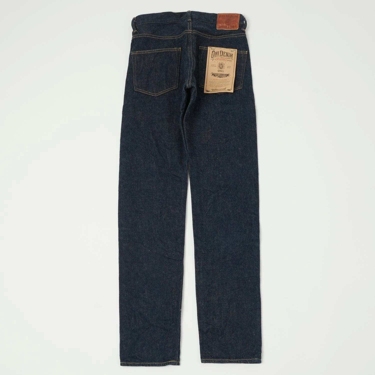 The fabric has been expertly woven in the iconic ONI fashion which ensures that as the denim is broken in by the wearer, the cotton softens and the indigo fades away in a manner unique to the individual. The manufacturing is as solid as you would come to expect from ONI, and features universal copper rivets, raised belt loops, heavy duty bar tacks, and durable canvas pocket bags. The back patch is made from a deep deer skin leather which is home to the company’s demonic mascot. This jean boasts a subtly cool pink selvedge line which adds a pop of colour to the cuff.