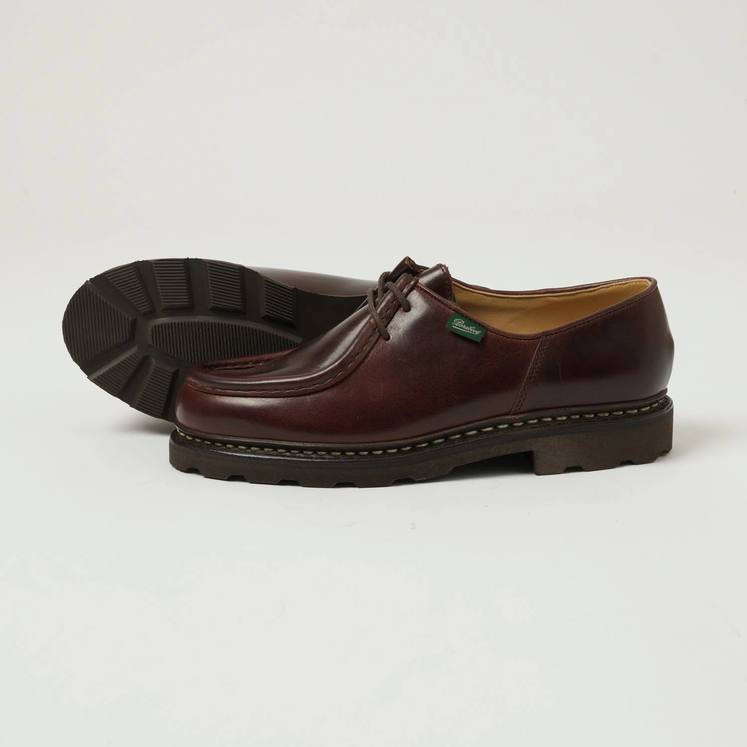 The Michael is a heritage shoe which has quickly become a modern classic. Featuring a simple two eyelet bridge, and unique and instantly recognisable nose shape, this shoe has been made in France by the Paraboot company since its inception.