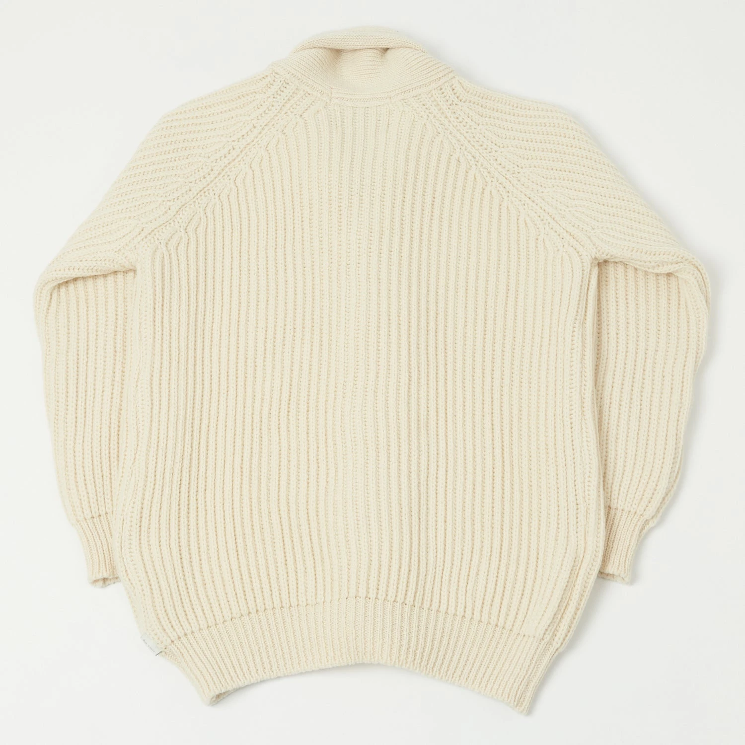 Crafted from a 100% merino wool, this timeless shawl collar cardigan features a boxy shape which gives the perfect vintage silhouette. A raglan sleeve has been included to increase the freedom of movement, while chunky ribs in the knit add to the brand’s heritage appeal.