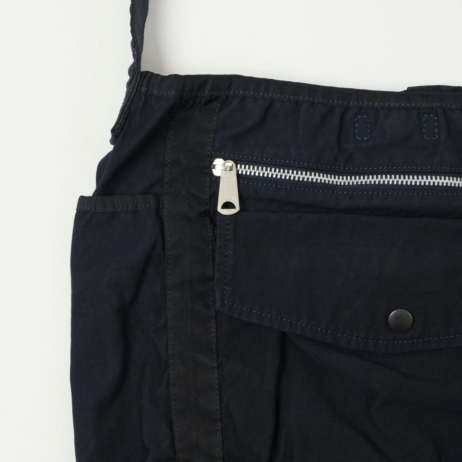 Cut from a densely woven satin fabric, the Crag shoulder bag is a brilliant mid sized offering from Porter. With a central compartment which is just big enough to carry your daily needs, without being cumbersome, this bag is well suited to city life. Three outer snap fastened pockets provide storage for your valuables, and an extra zip fastened pocket featured for security.