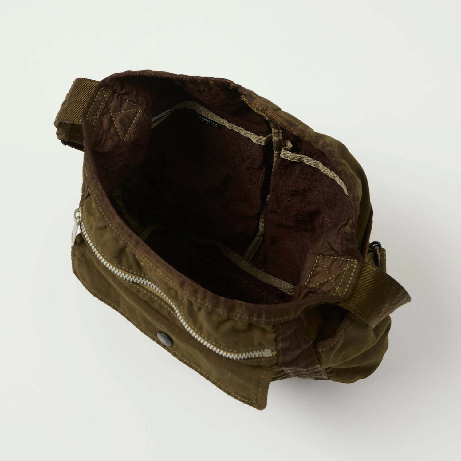 The main opening is secured by a reinforced summary snap, and the inside of the bag boasts a further two storage compartments. To give this piece its unique heritage feel, Porter have garment dyed this range of bags, with brilliant results.