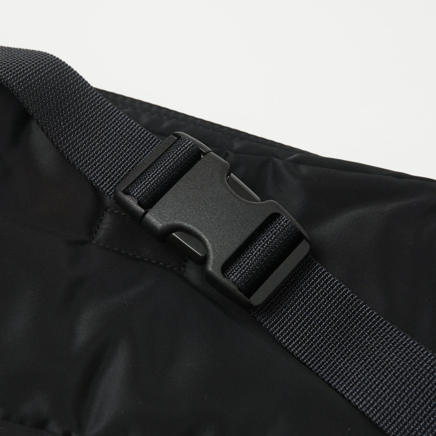 Taking inspiration from MA-1 flights jackets of the U.S. Military, the ‘Tanker’ waist bag collection are cut from a durable nylon outer shell, and featuring a padded ‘rescue orange’ inner. This offering is designed to be worn around the waist, or over the shoulder, and is the perfect option for keeping your valuables safe in the busy city.