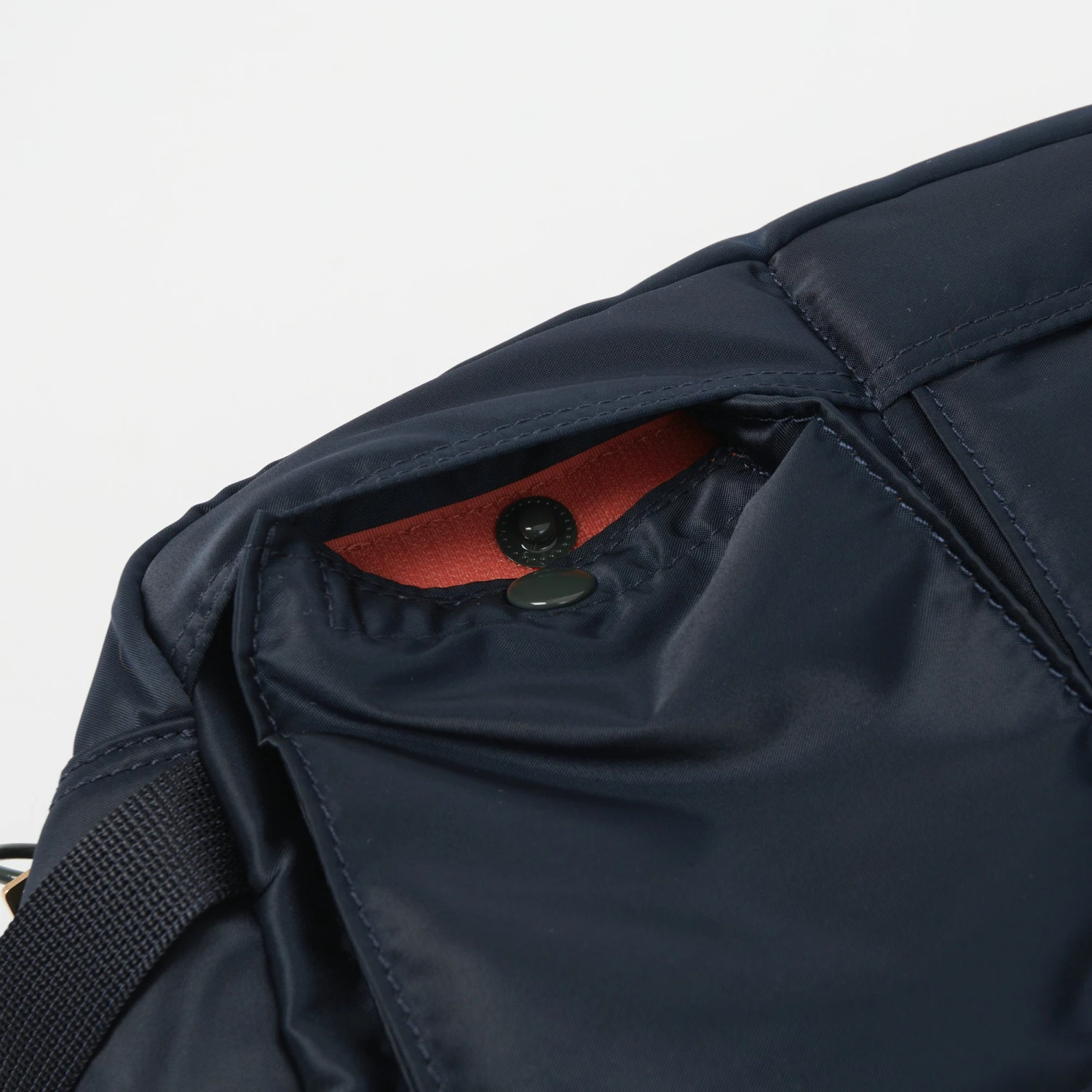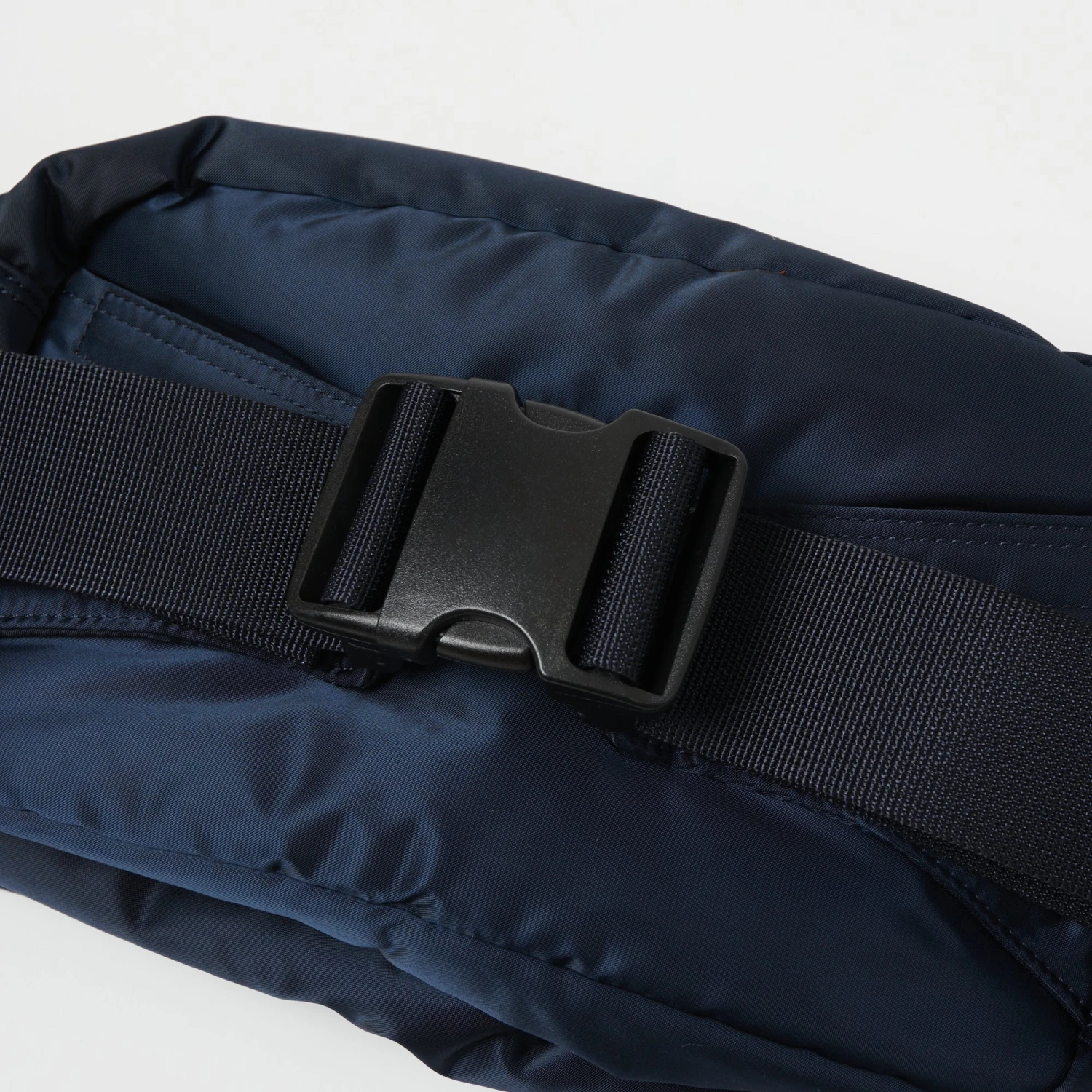 Taking inspiration from MA-1 flights jackets of the U.S. Military, the ‘Tanker’ waist bag collection are cut from a durable ‘Iron Blue’ nylon outer shell, and featuring a padded ‘rescue orange’ inner. This offering is designed to be worn around the waist, or over the shoulder, and is the perfect option for keeping your valuables safe in the busy city.