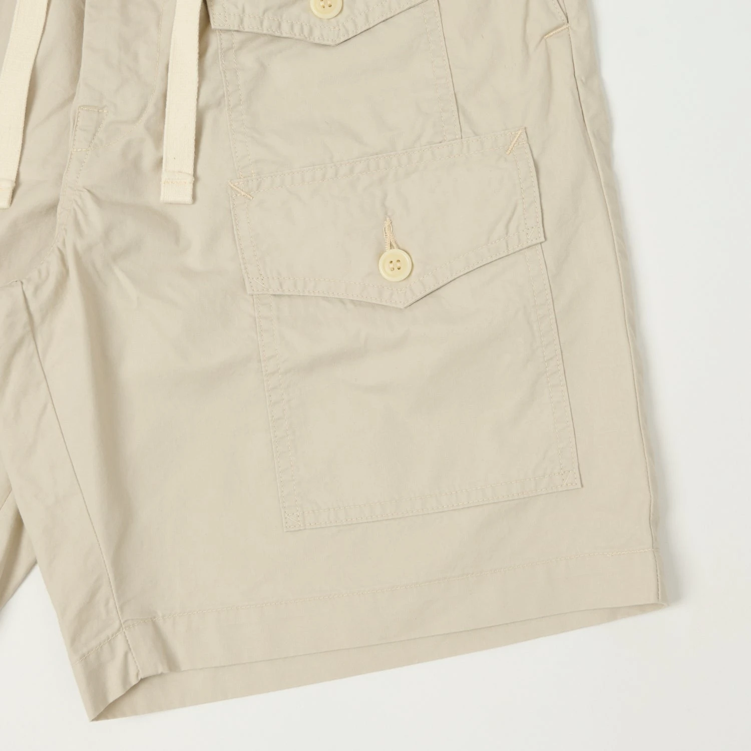 Post Overalls ‘Town & Country’ shorts are the perfect choice for adding some old-school but practical style into your summer outfits. Cut from a light weight, all-cotton poplin, the shorts main design feature is their frontal pockets, which resemble the design of the M-65 jacket, an provide a subtle military style. With 6 pockets in total, including three summaryed front pockets, one summaryed back pocket, and two side pockets, the shorts also feature an elasticated waistband with a drawstring. As a final mark of quality assurance, the brand have added their custom label!