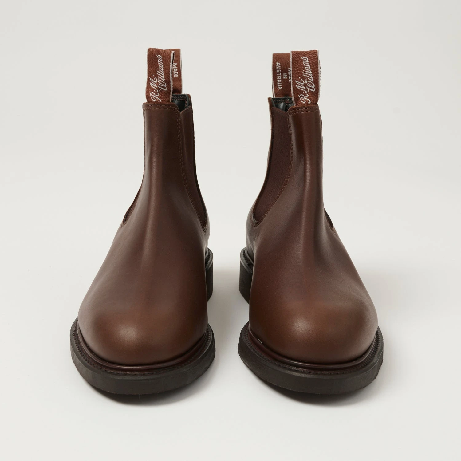 The ‘Gardener’ boot is a standout from the R.M. Williams collection, with the brands distinctive upper crafted from a single piece of oiled kip leather, ensuring longevity and sturdiness. The leather is stitched along the heel for reinforcement, and pull tabs and elasticated side panels allow the boot to be pulled on easily. Sporting a round toe, treaded welt sole, and a one piece heel, the Gardener boot is sure to be a staple in your boot rotation!