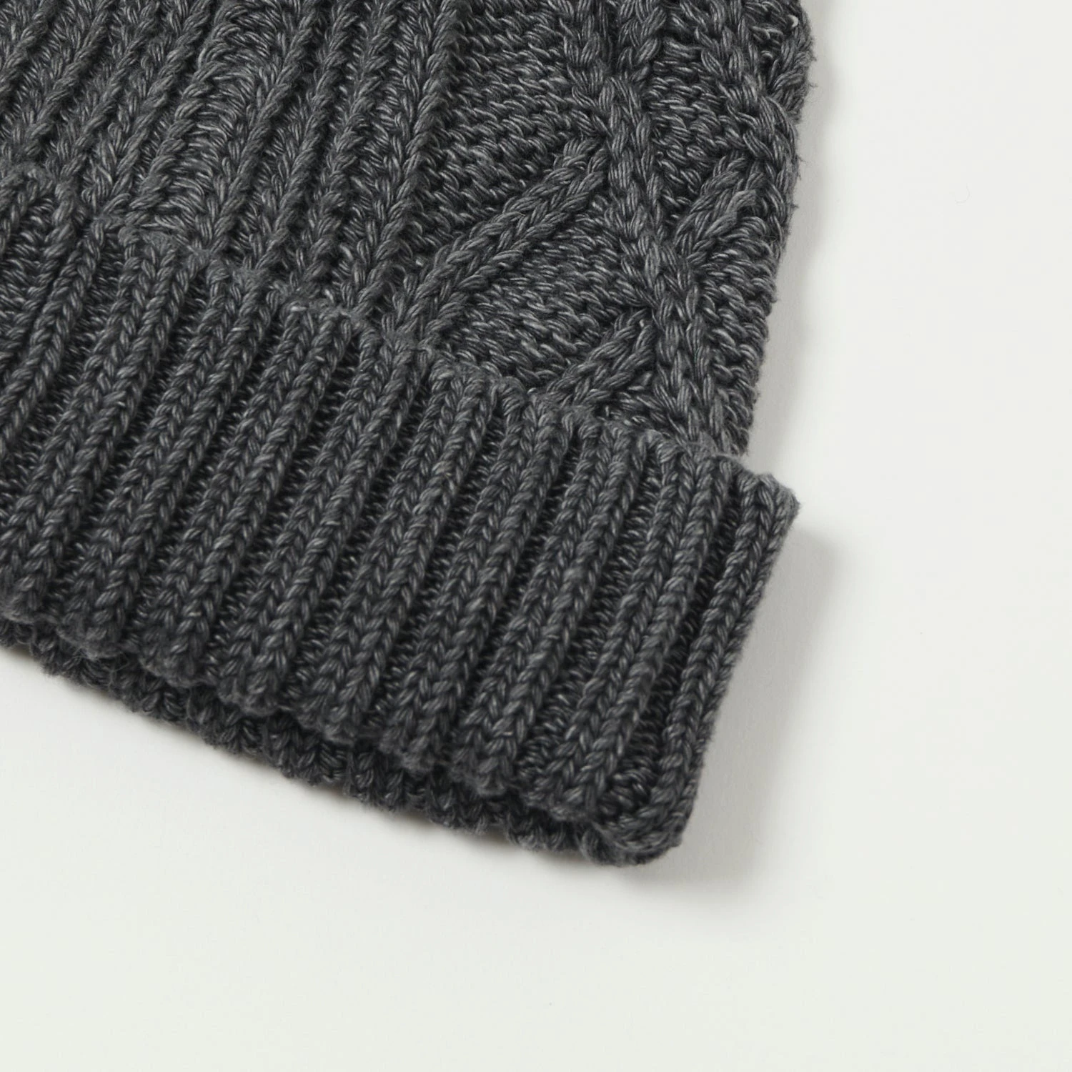This all cotton watch cap has been woven in the traditional Aran pattern, and the brand have given the piece a light bath in some beautiful indigo dye. With one built in roll, the cap fits small on the head, and moulds into shape effortlessly, thanks to the quality of the materials used.