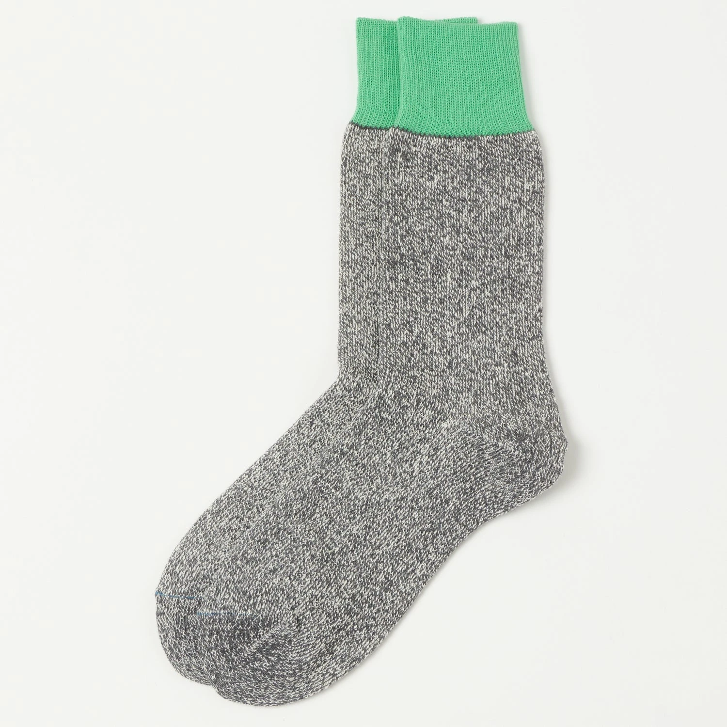 With a delicate blend of silk and cotton, these comfortable double face crew socks have been expertly knitted by Rototo in their very own sock factory. Using understated tones for this collection, this sock provides subtle support to your foot, to carry you through your busy day. This design features a contrast coloured top, for an added touch of interest.