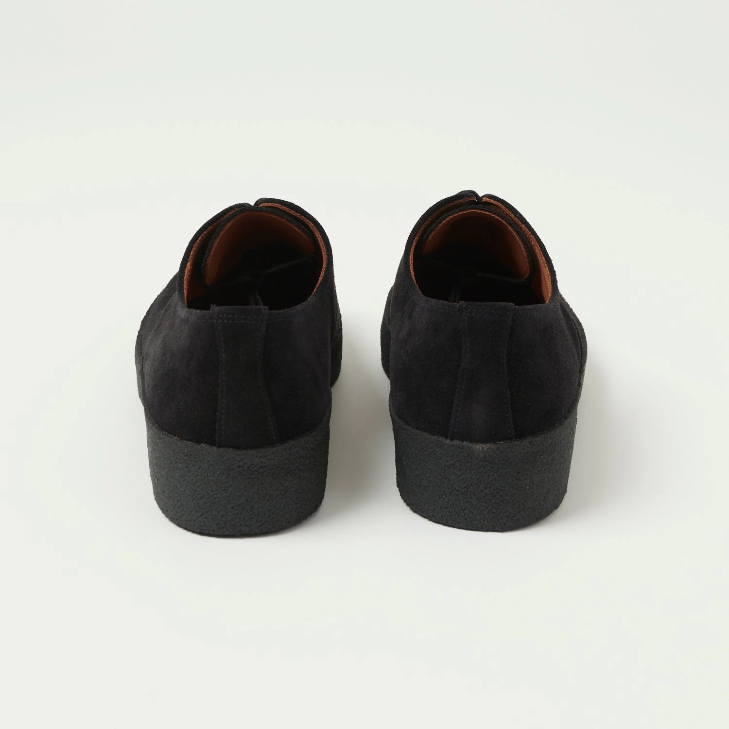 The high quality suede upper is met with a leather lining, and durability is continued with a full authentic rubber sole. Three concealed metal eyelets guide the waxed cotton laces for the front closure, while a sloped heel adds comfort to every step.