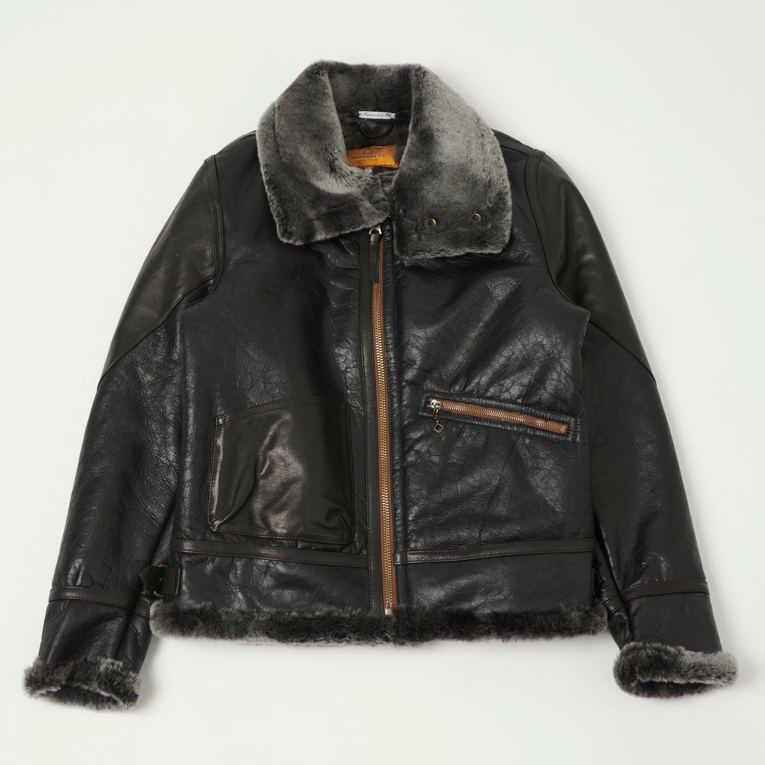 With design roots in the early 1940’s flight jackets of the United States Air Forces, this boxy shaped winter offering is cut from a vegetable tanned Lambskin from Tuscany. Each piece of this timeless heritage design is made by hand, by Italy’s most skilled craftsman, and boasts iconic military detailing including a snap fastened collar to protect your neck from the elements, full shearling lining, and buckled waist adjusters to cinch in the silhouette.