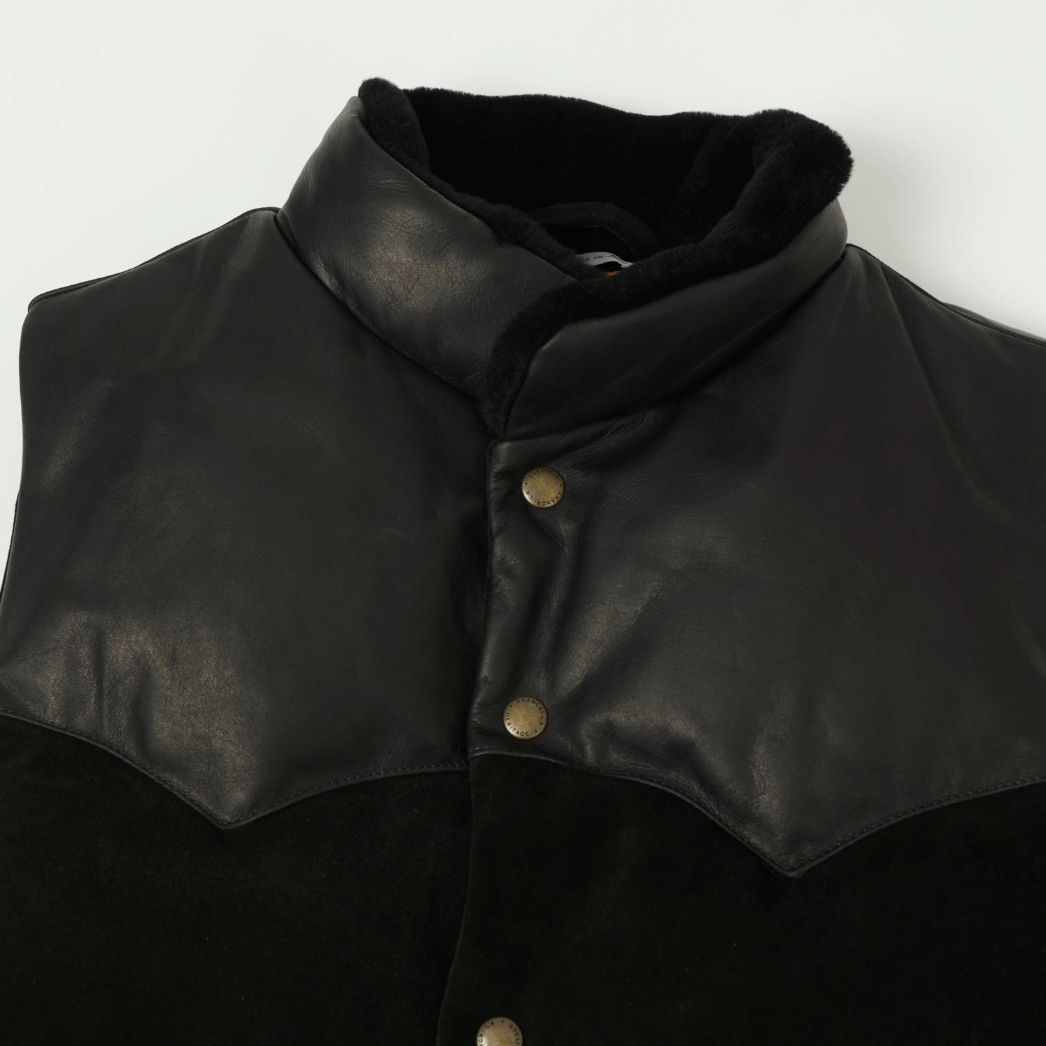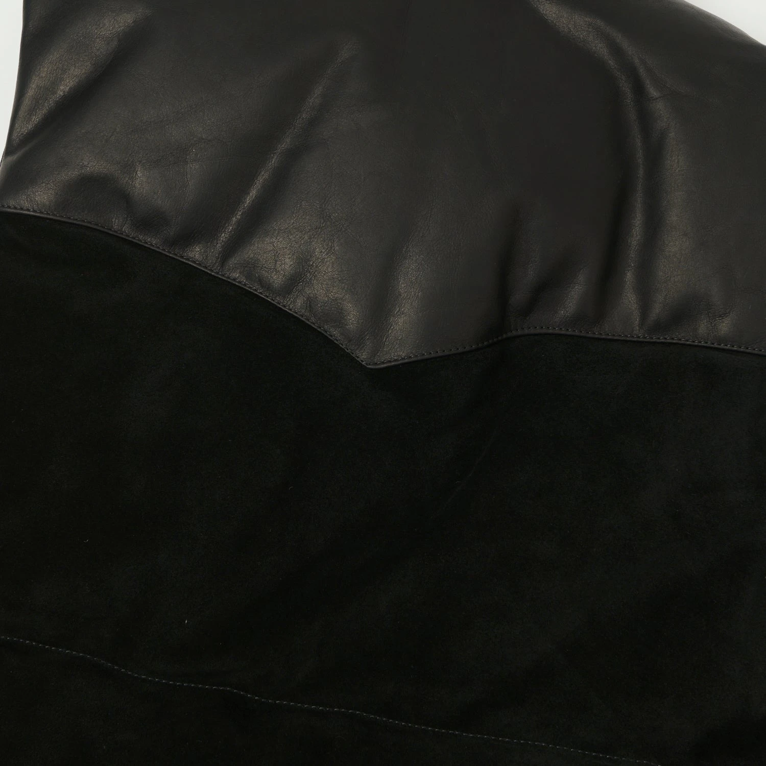 The standard fit of this piece allows for a sophisticated, modern silhouette, while an added touch of luxury is brought to the forefront by shoulder panels in calfskin suede, met with an Italian Merino shearling lined collar. Twin hand warmer pockets have been added for functionality, while durable snap fasteners serve for the front fastening.