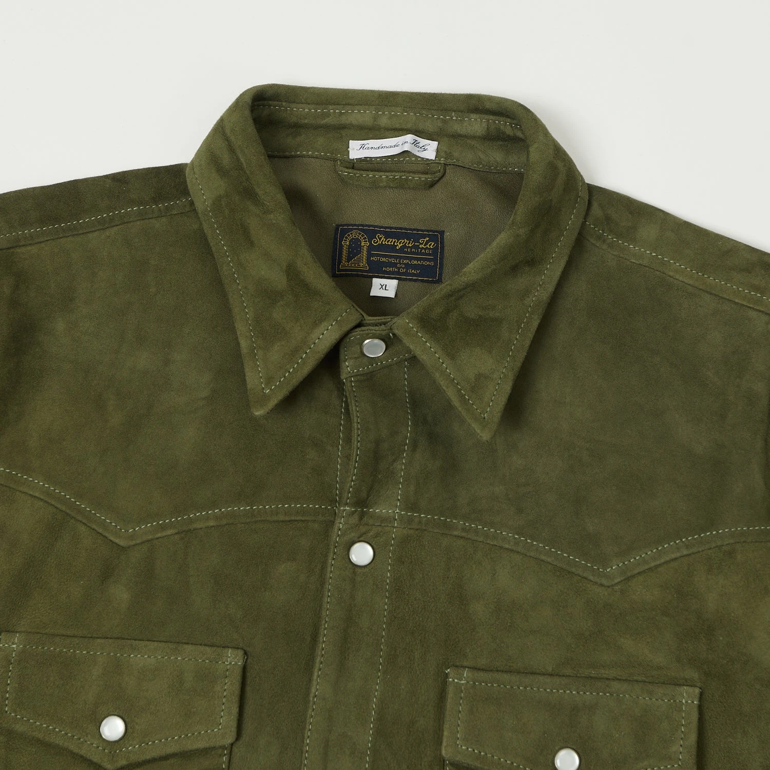 Inspired by Western shirts from the early 1960s, live your cowboy dreams in Shangri-La’s ‘Gonzo’ Suede Western Shirt. Made from Tuscan full grain lambskin suede, the shirt features a T-back for a little extra heritage authenticity. With a western front and back yoke, pearl snap summarys and double point pockets, this slim fit shirt is perfect for that western edge.