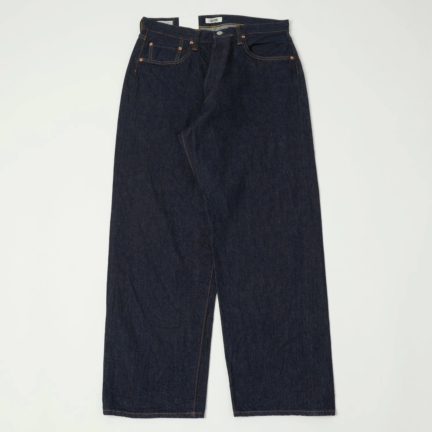 The wide-leg of this jean is complemented by the deep rise of the crotch and shorter cut inseam to create a unique loose-fitting, supremely comfortable garment. This jean boasts a classic five-pocket construction at the top and is very easy to wear.
