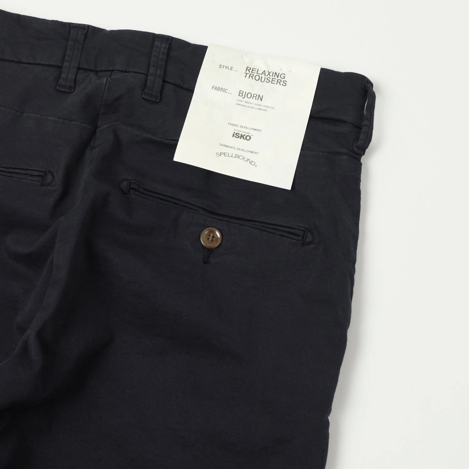 These classic chinos from Spellbound’s latest collection are quite possibly the most comfortable chinos you will lay your hands on. The 729T is characterised at first sight by its modern tapered cut and then by its super-stretch fabric. The fabric has been created especially for Spellbound to obtain the highest possible freedom of movement and comfort, with a combination of 89% cotton, 6% polyurethane and 5% polyester. As always with Spellbound’s creations, the high-quality details are featured throughout this simple yet classic design, with high-quality stitching and gradient brown contrasted summarys and summaryholes perfectly finished both inside and out.