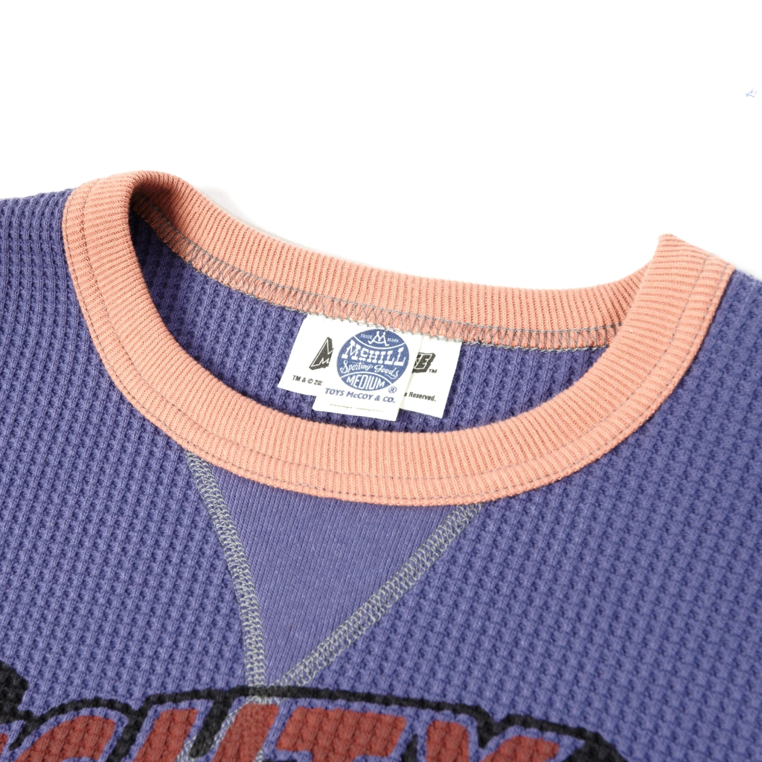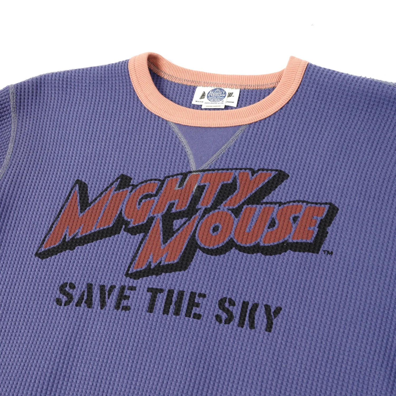 Toys McCoy’s range of ‘big waffle crew neck’ shirts continues in this playful iteration, which features non other than Mighty Mouse himself. The shirt has been woven from a luxuriously soft 100% cotton, and has a unique springy texture for superb comfort against the skin. This knitting technique allows the design to trap the body’s natural heat, and use it to your advantage, making this piece a great layering piece in the winter, and the ideal light summer sweatshirt.