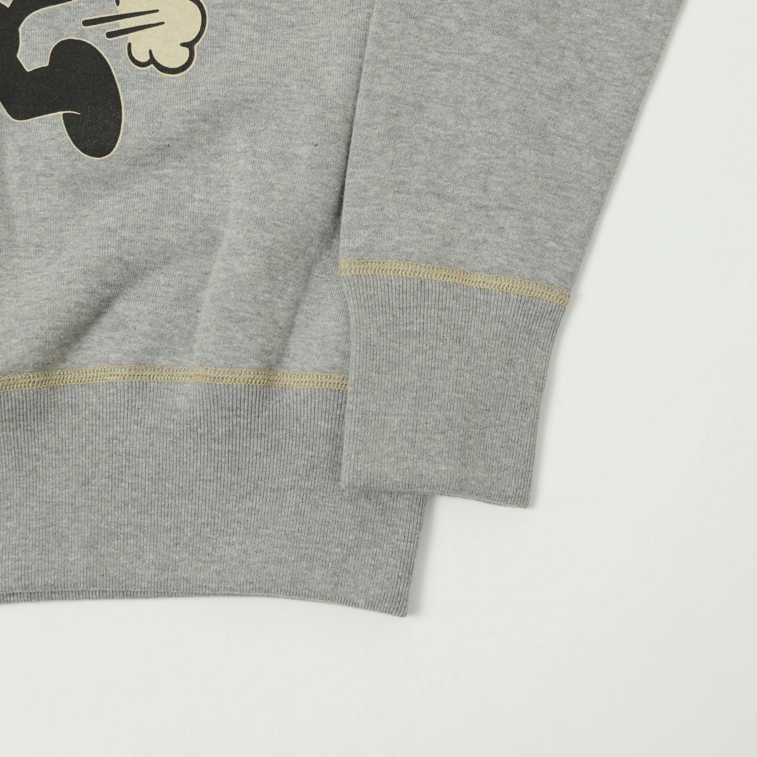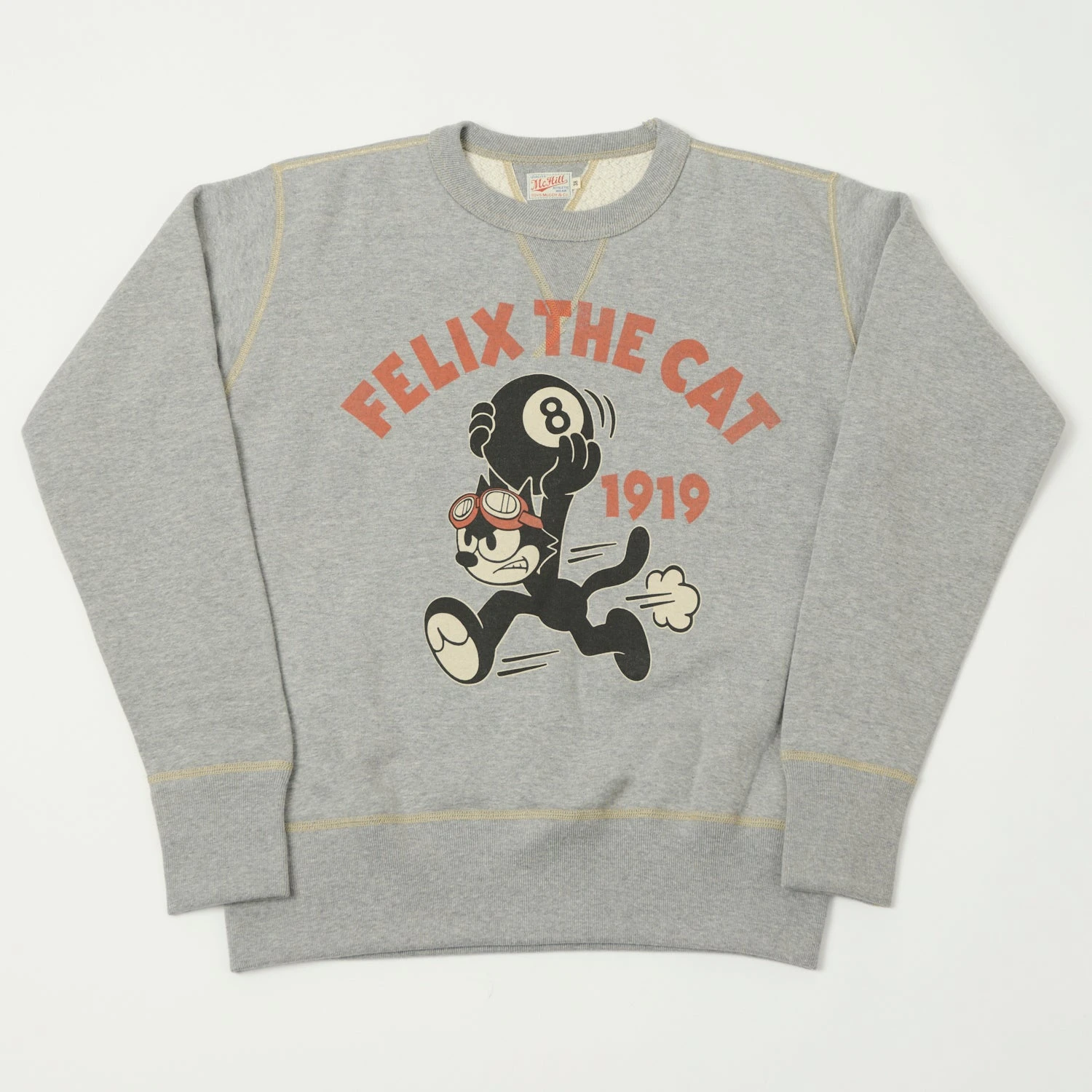 Woven on vintage loop-wheel knitting machines, this piece is the epitome of quality and comfort. This 100% raw cotton sweatshirt is cut in a regular shape, not too loose and not too slim, and features ribbed cuffs and waistband for the perfect comfort fit. A double V collar insert and soft, brushed interior add a nice touch of heritage detail, while a vintage inspired graphic of beloved cartoon character Felix the Cat adorns the front. Topped off with a custom woven label, this is the perfect sweater for a mid-century wardrobe!