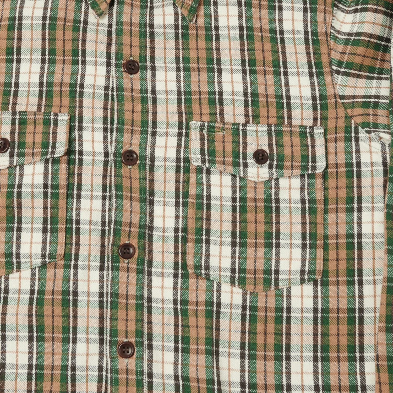 This beautiful new option from Warehouse & Co is the 3022 Check Flannel Shirt. Cut from a luxuriously soft 100% cotton flannel, this shirt is a standard fit classic of menswear. Two chest pockets are featured for versatility, whilst a throat summary tab has been added for a heritage kick. The cotton has been brushed on this inside of this design for superb comfort, and the custom made nut colour summarys add a true vintage feel.