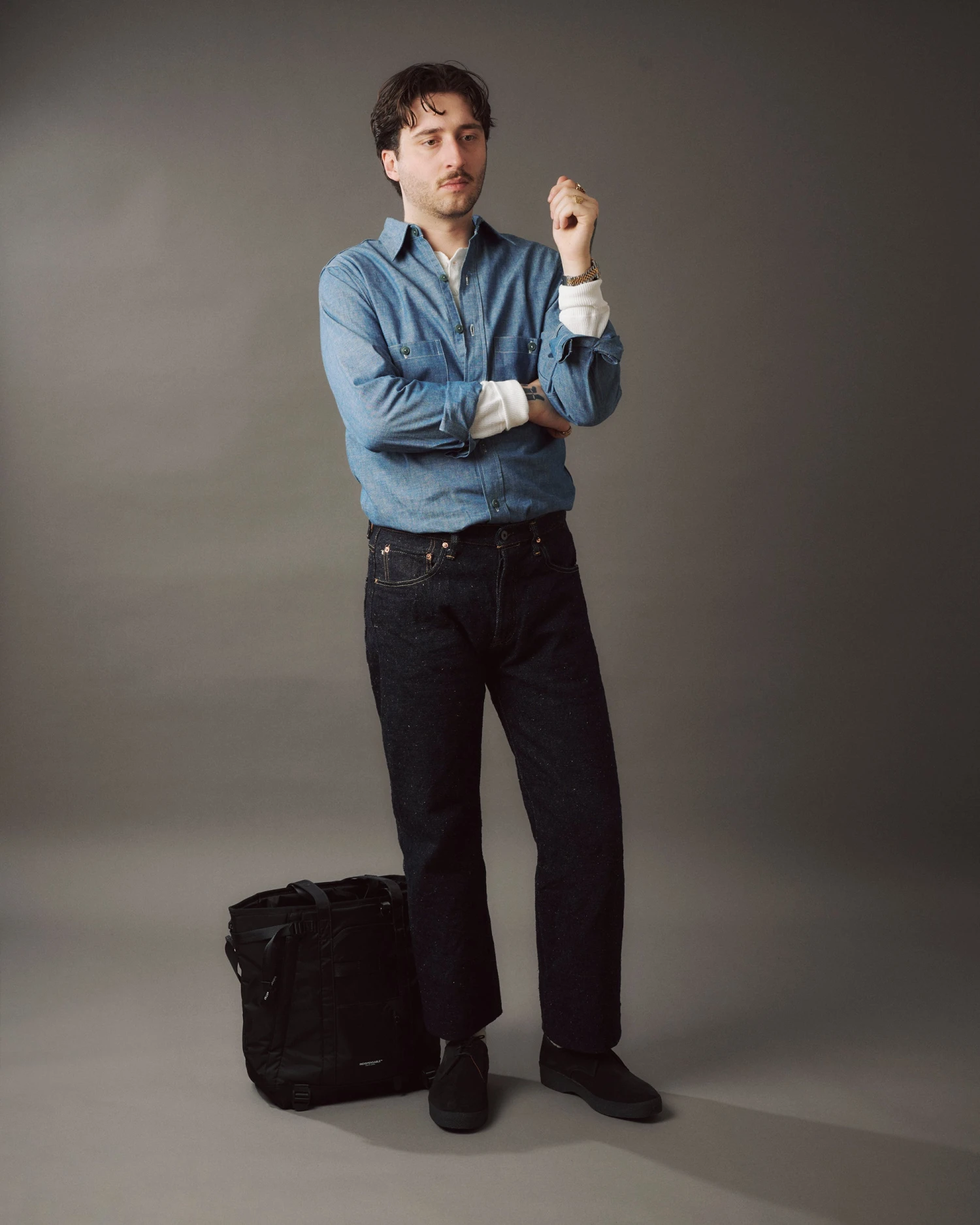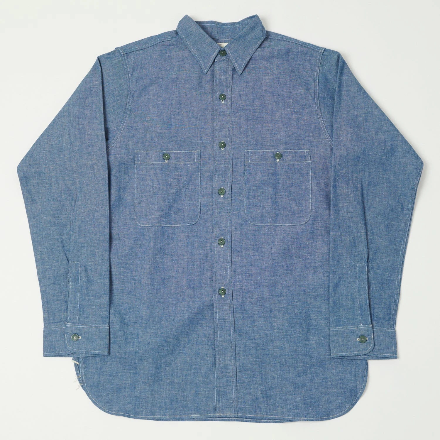Cut from a lightweight 100% cotton chambray fabric, this 1940s inspired USN shirt offers a boxy shape, and simple, paired down detailing which has stood the test of time. Two simple patch pockets have been added for utility, while flat felled seam construction throughout offers durability.