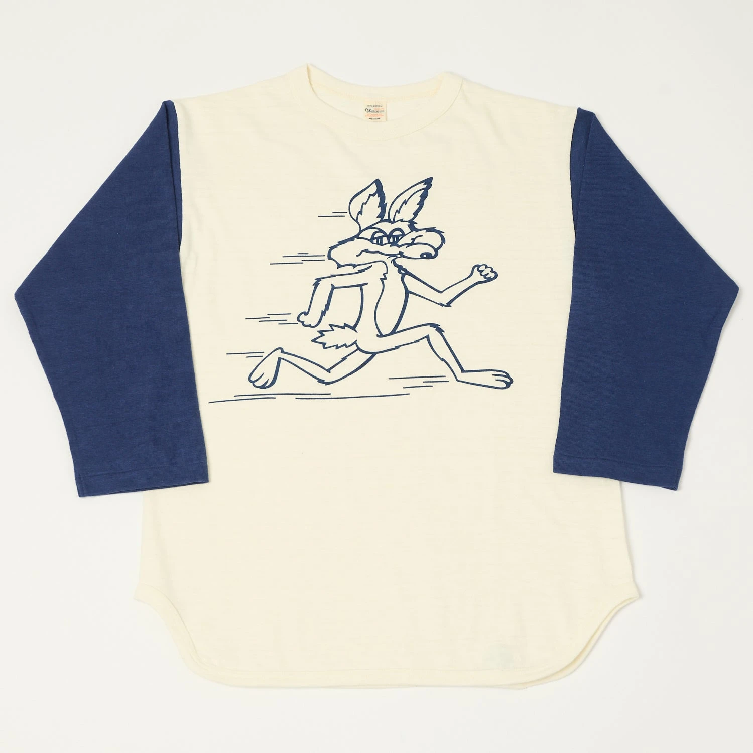 This iteration of Warehouse & Co’s 4800 baseball tee is marked with a true piece of heritage inspired design. Boasting a playful ‘coyote’ print on the front this mid-century inspired baseball jersey, this offering is detailed and simplistic all at the same time. Featuring a dropped hem at the waistline, this shirt is longer at the front and back than it is at the sides, giving an iconic silhouette.