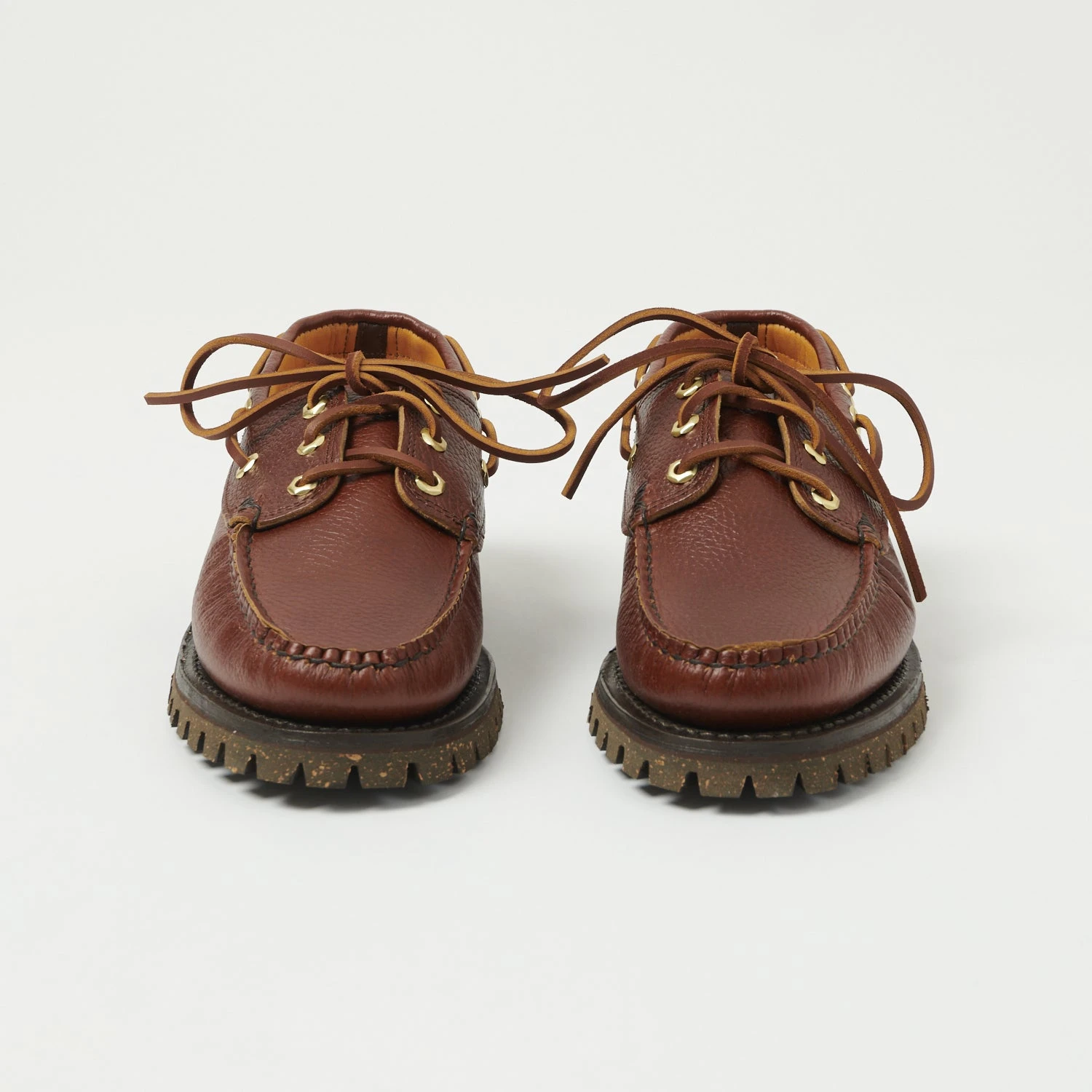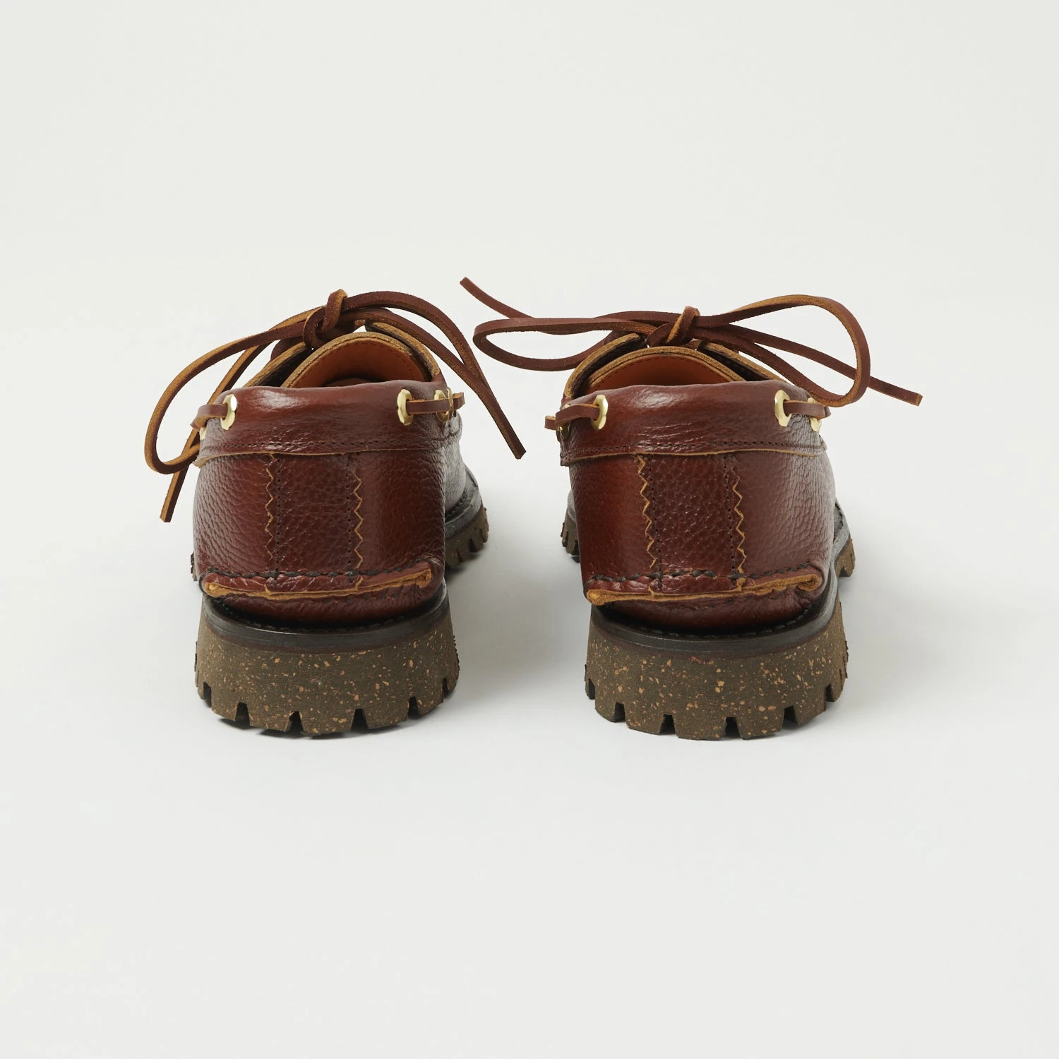Hand-crafted from an exquisite Horween Pebbled Grain Chromexcel Pull-Up Leather, this rugged Boat Shoe has been built to last! A custom built foot arch has been added, using orthopaedic standards as their guide, with a full leather insole, leather tuck, durable shank, and memory foam bed for superior comfort. A leather and rubber mid-sole has been featured for support and durability, while a custom made Italian Cortina Lug-Sole ensures a long and healthy lifespan.